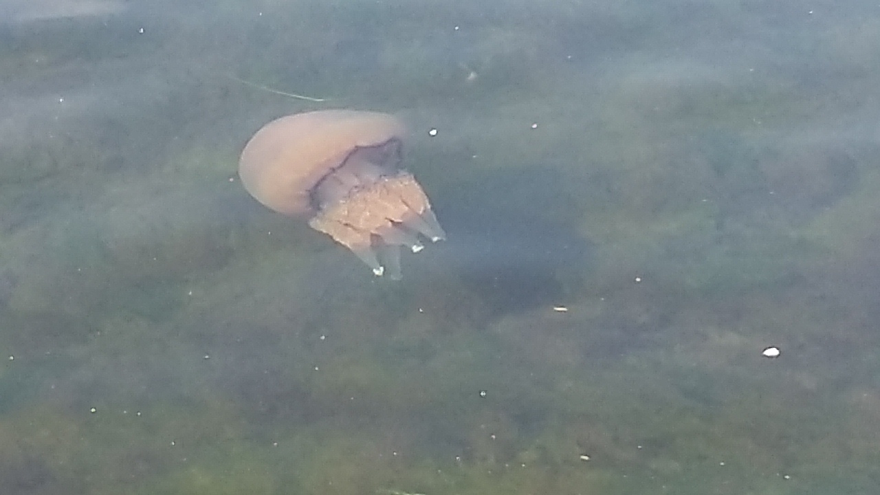 Whilst we were walking we spotted an incredibly large jellyfish in the clear waters near the bank and were thankful we were not bathing at the time.
