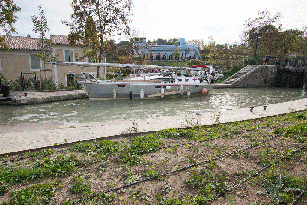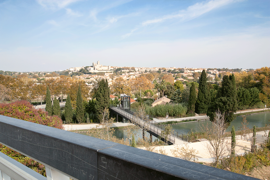 We chose to enjoy the benefit of the city views from the top of the new garden before making our way along the other arm of the canal, across the River Orb, via the Orb Aqueduct, and into the small port of Béziers.