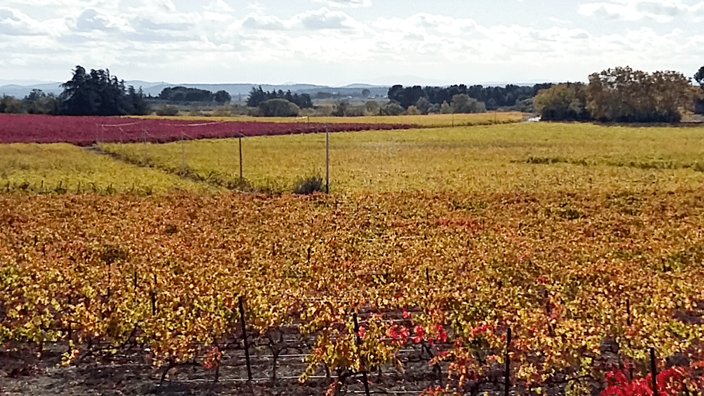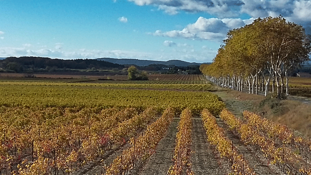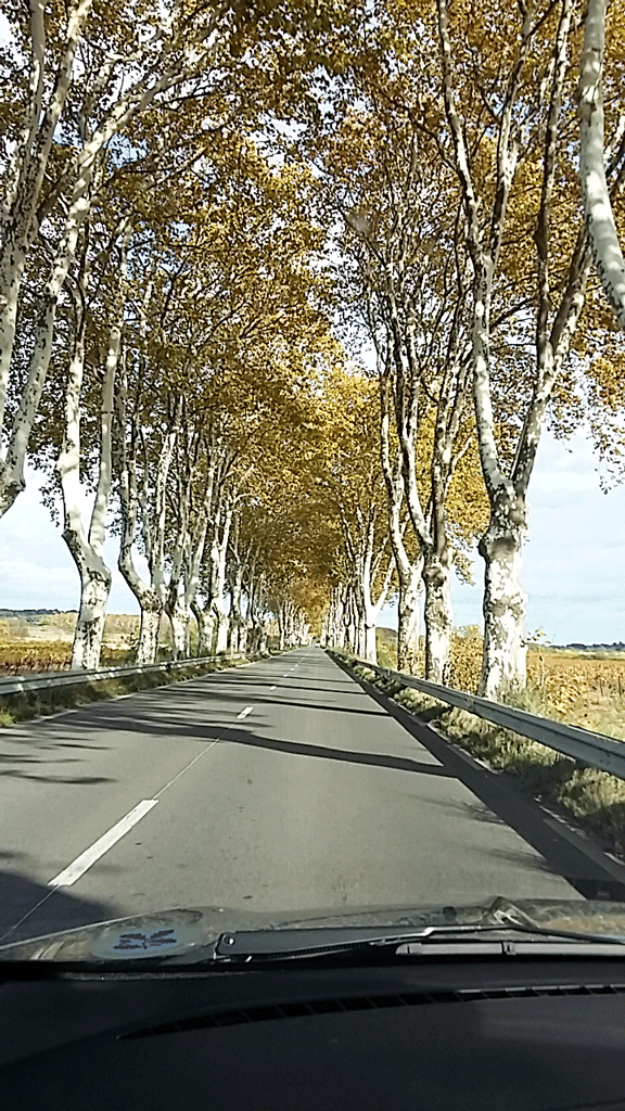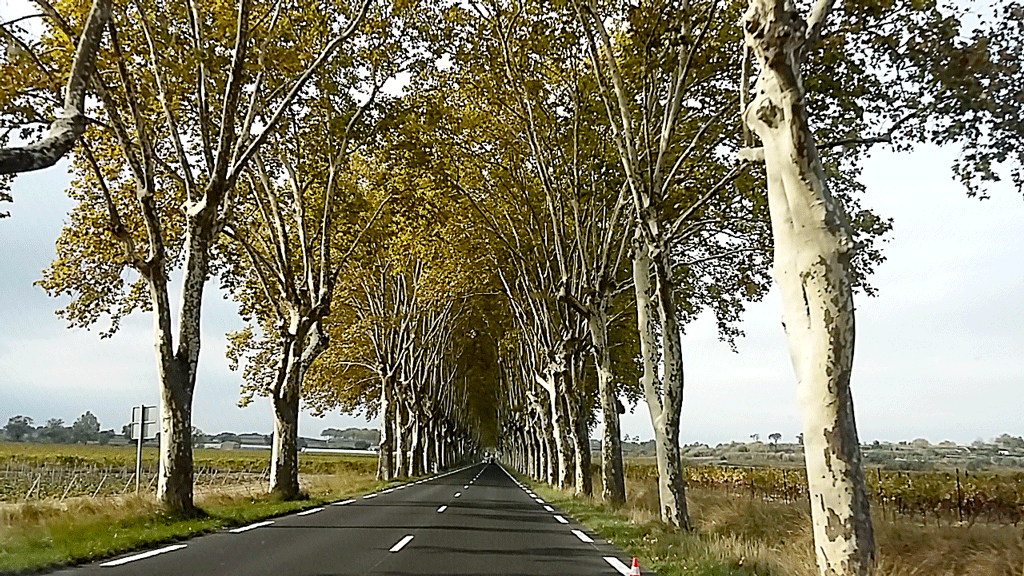 What made the road lovely were avenues of old plane trees as well as an abundance of vines, in a variety of autumnal hues.
