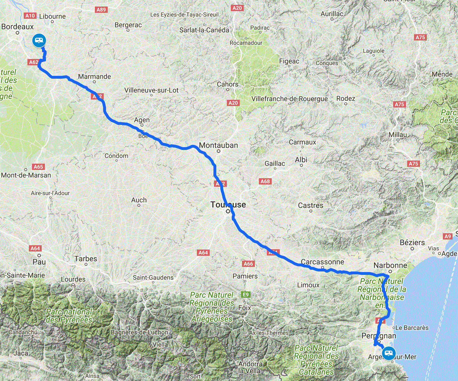The Camping Card app showed that Campsite Le Florida would serve us well at €17 a night, and despite an unusual review that mentioned a medieval toilet block, we made that the target for the day, a 461km route.