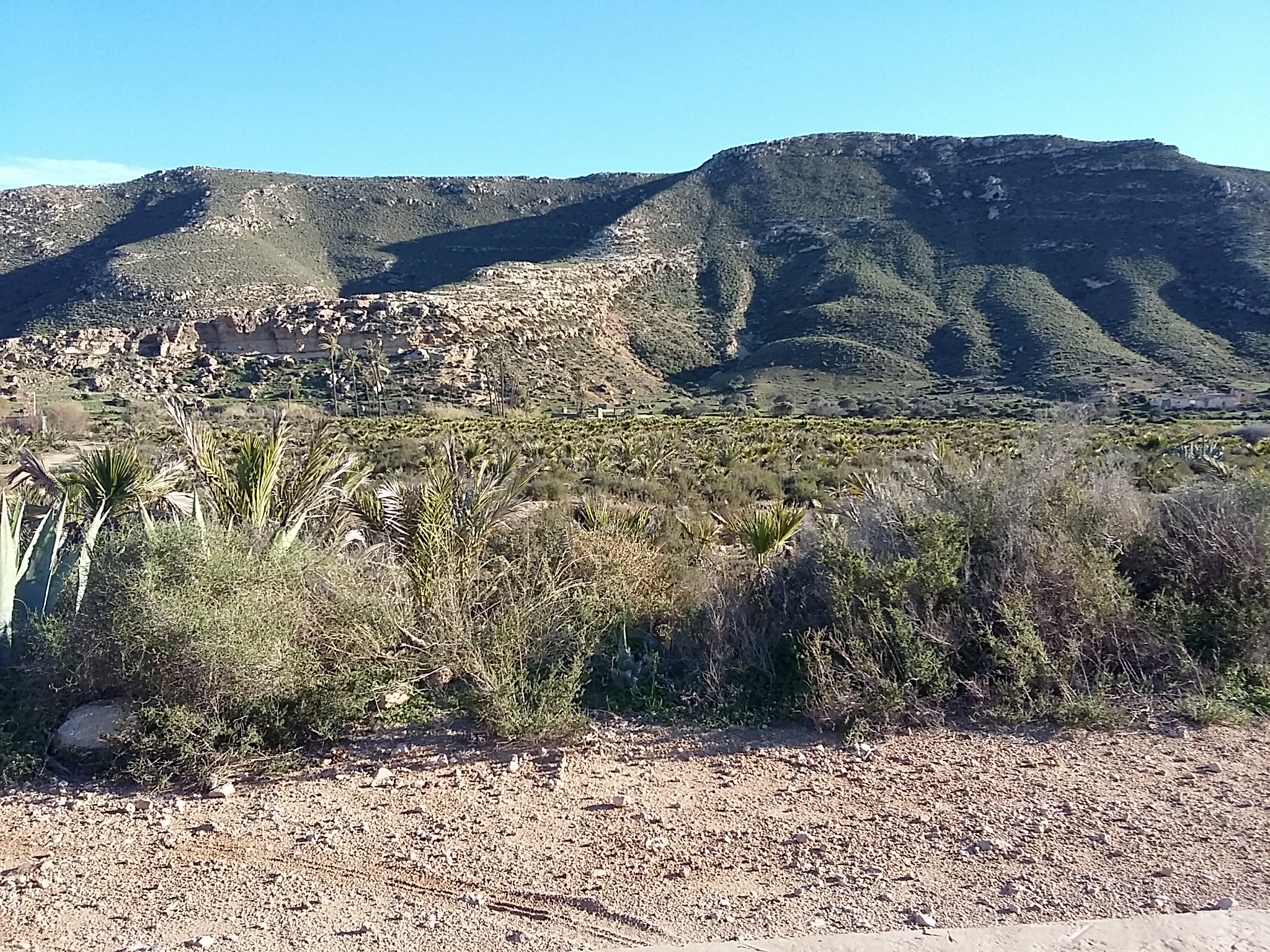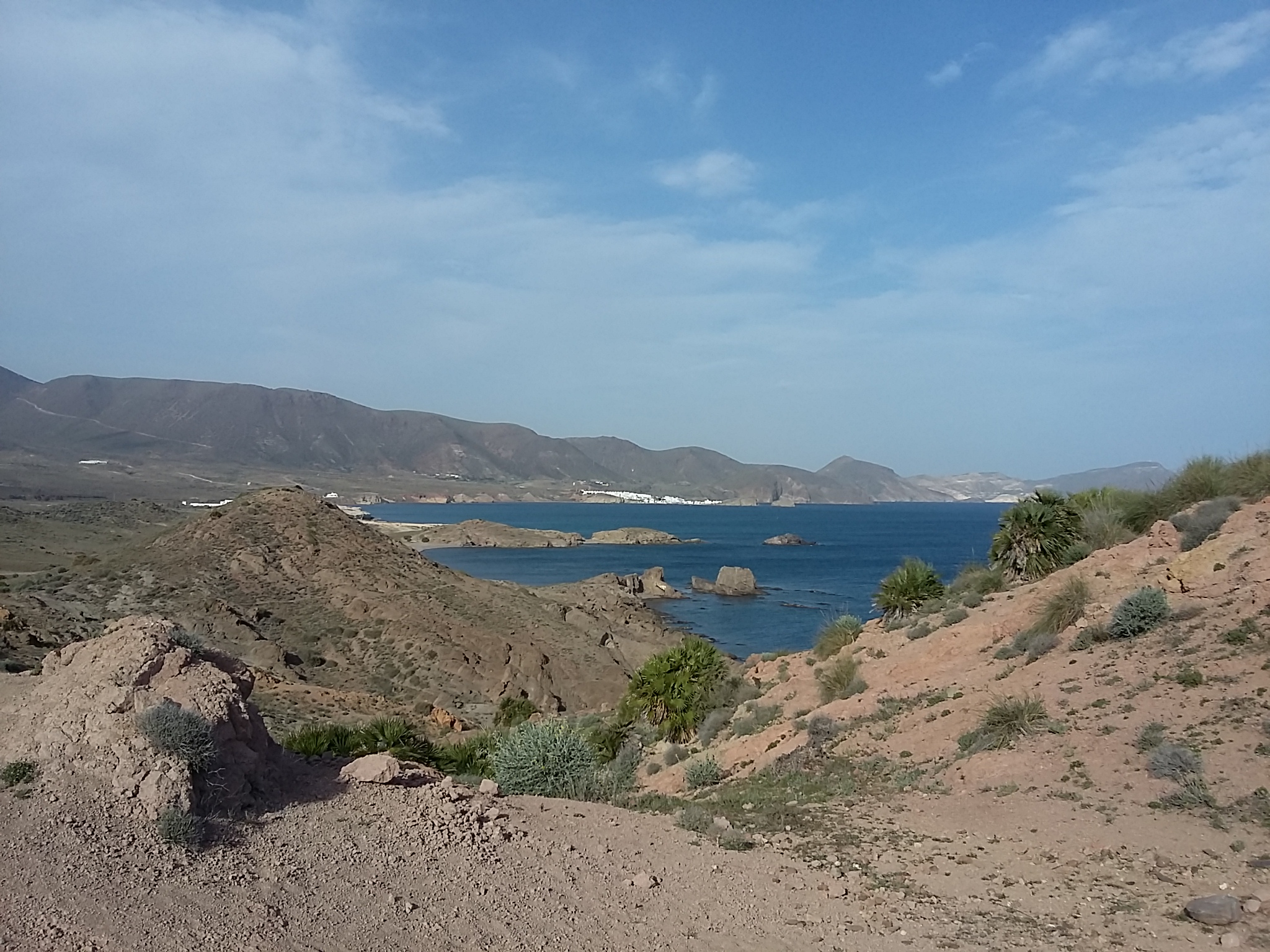 From our campsite we were told it was a 1km walk down to the coast and the Playa at Los Escullos, so we made our way south of the site, down a very shabby track, with stones and deep tyre tracks. The immediate surroundings were not particularly awe inspiring, but the views of the mountains in the distance were stunning.