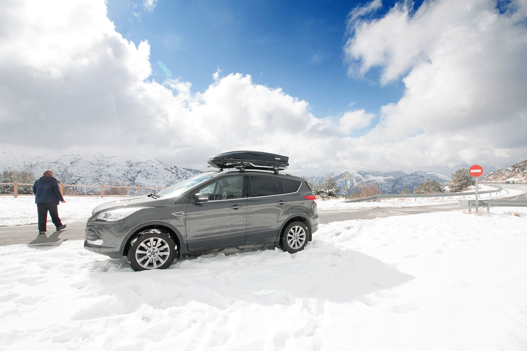 The road up the mountain was excellent and made me wish that I had my old motorcycle here. That was until Kim pointed out the temperature outside was plummeting. It quickly fell below freezing, with plenty of snow along the side of the road. I couldn’t resist testing the Kugas all wheel drive system 🙂