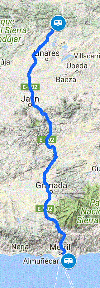 The trip went well, at lower speed than normal due to lots of climbing, in glorious sunshine & 16°C temperature, and once past Granada there were endless numbers of olive groves for a far as the eye could see.