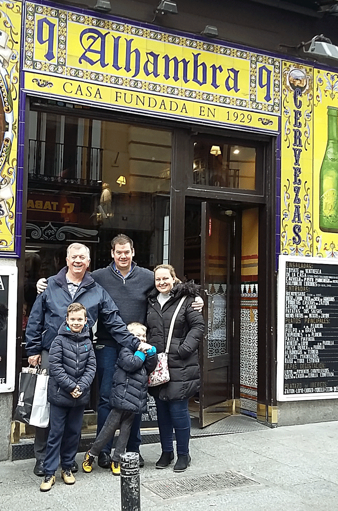 Glenn, Lynsey and the boys met us after their visit to the Palace and we took a bus to Calle de la Victoria 9, 28012, to the restaurant Taberna Alhambra arriving around 13.00.