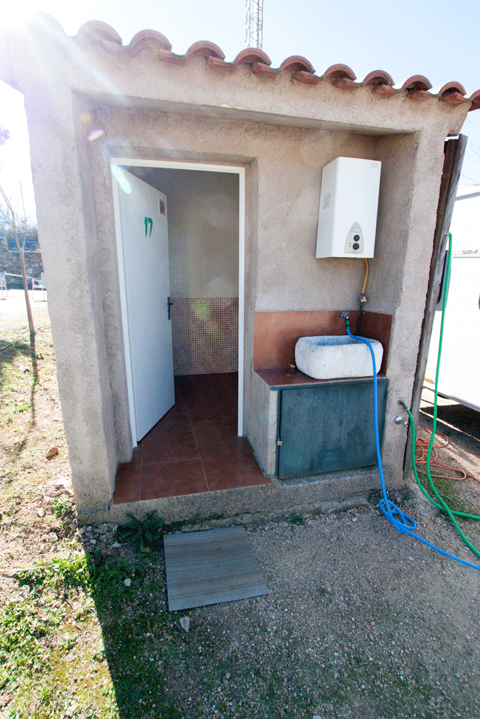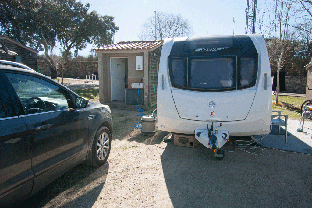 Looking for a site approximately half way, we read good reviews of Cáceres Camping. Another Camping Card site, it is unusual in that every pitch has its own toilet/wet room. It costs €17 per night with further discounts for longer stays, 4 nights for 3, 8 for 6 etc.