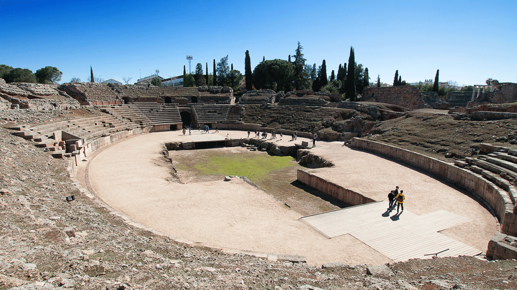 After a slightly longer than anticipated walk, past the Estadio Romano we reached the site of the Roman Amphitheatre and Theatre, the Roman complex of Mérida, another world heritage site.