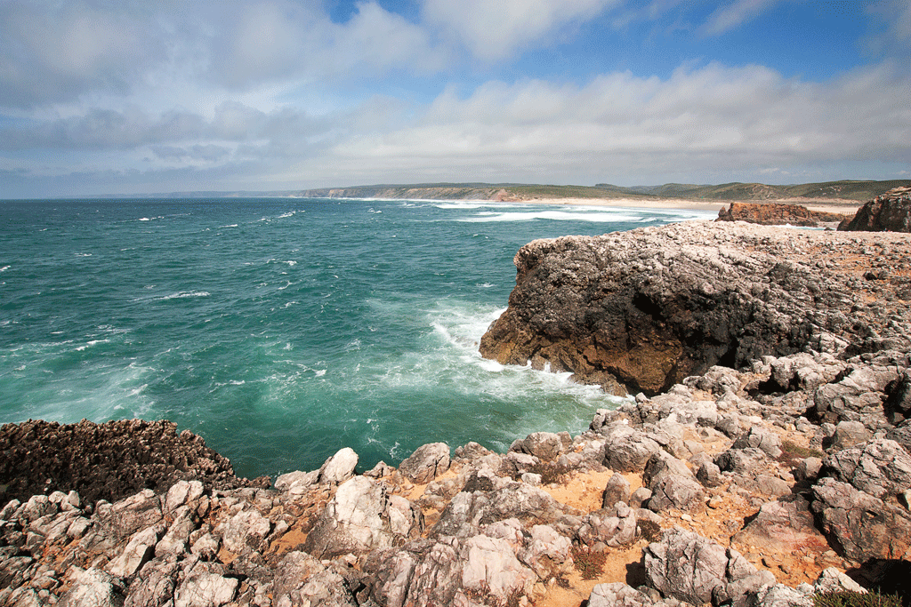 For information from this car park it is a very long walk, across the shallow Ribeira da Bordeira before you reach the 3km beach. From here it is quite a trek across this vast area of beach before you even catch a glimpse of the sea! But your efforts will be rewarded if you prefer uncrowded beaches.