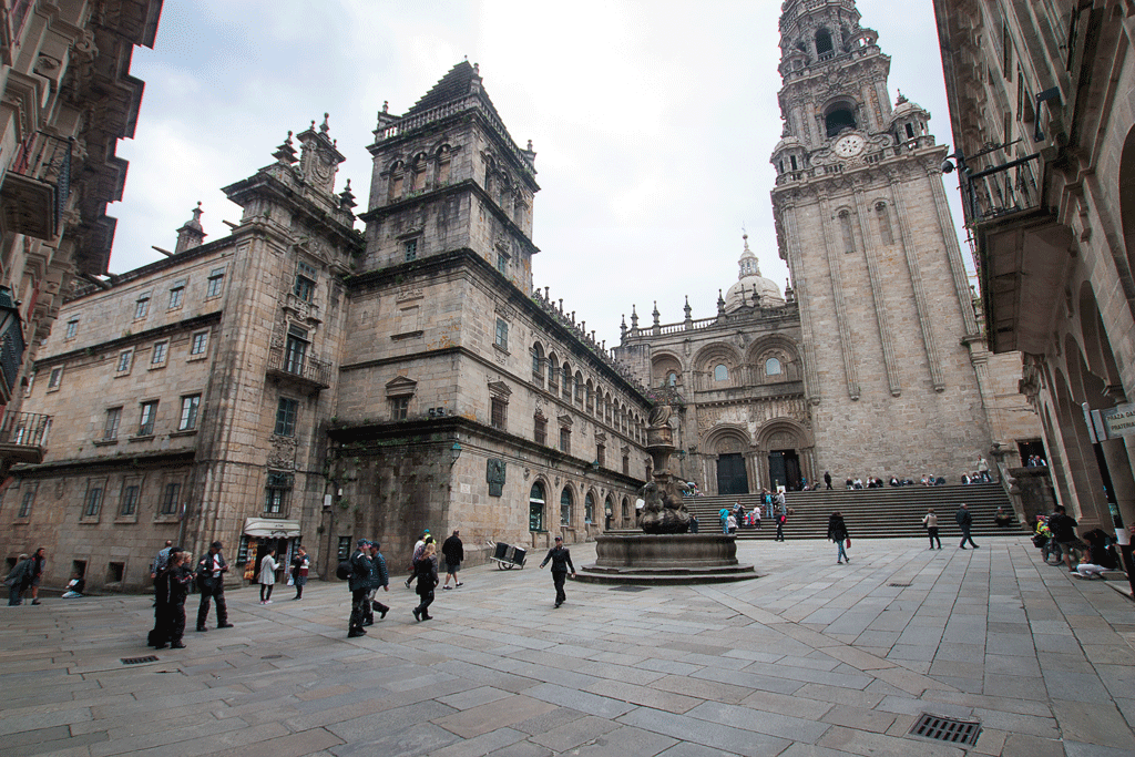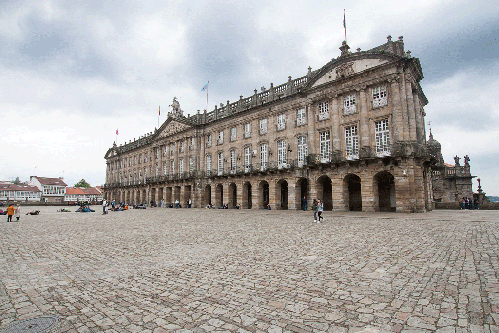 Opposite the west façade sits the Pazo de Raxoi, a former archbishops’ palace dating from 1766. It is used today as Santiago’s town hall.