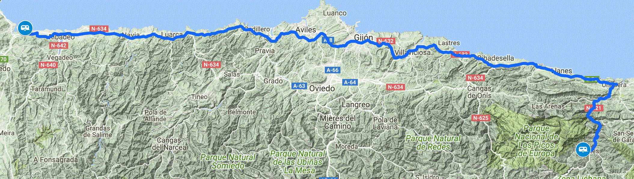 In my motorcycling touring days I had considered coming to the Picos de Europa on a couple of occasions but the lure of further destinations such as Croatia and Norway had always taken priority. Now was a good time to rectify my omission. We packed up and set off along the the A8 Autovia toward Campsite La Isla-Picos de Europa