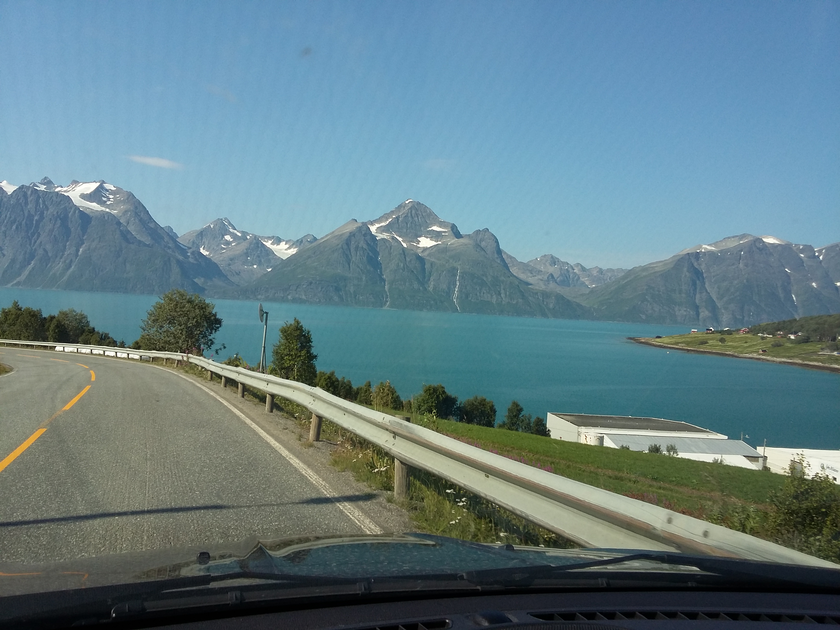 20 minutes later and 326 NOK lighter we arrived at Breivikeidet and made our way east on route 91, then north on E 9, along the fjord towards Tromsø.