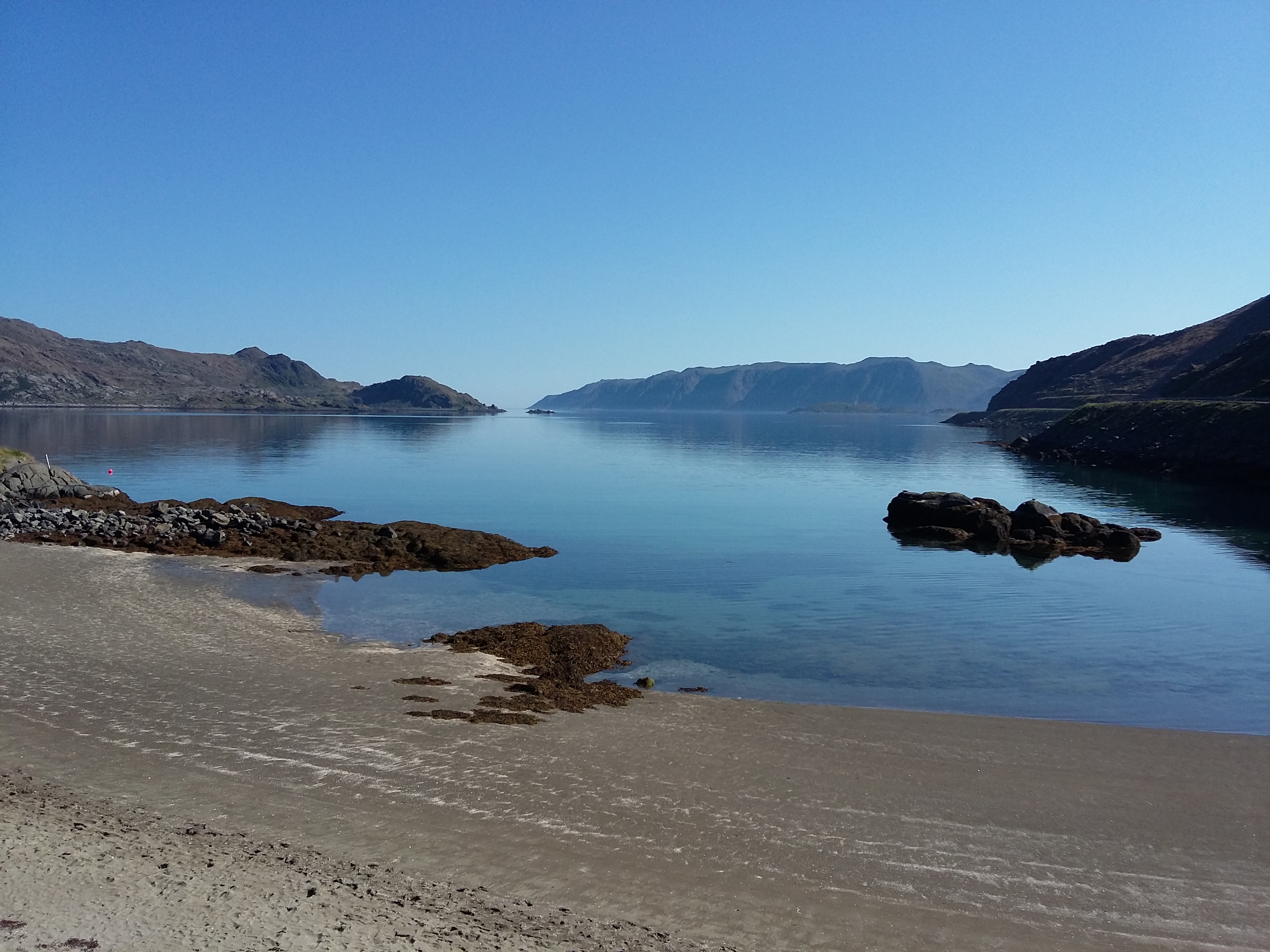 We both knew that we did not want to camp in the Alta area, as it was too built up, so despite the huge miles of driving that Ray had already done during the day, we made our way around the shores of the massive Alta fjord, passing through several new tunnels, before eventually reaching Altafjord camping and calling it a day! We pitched up on the lower level overlooking the innermost end of Altafjord, called Langfjordbotn.