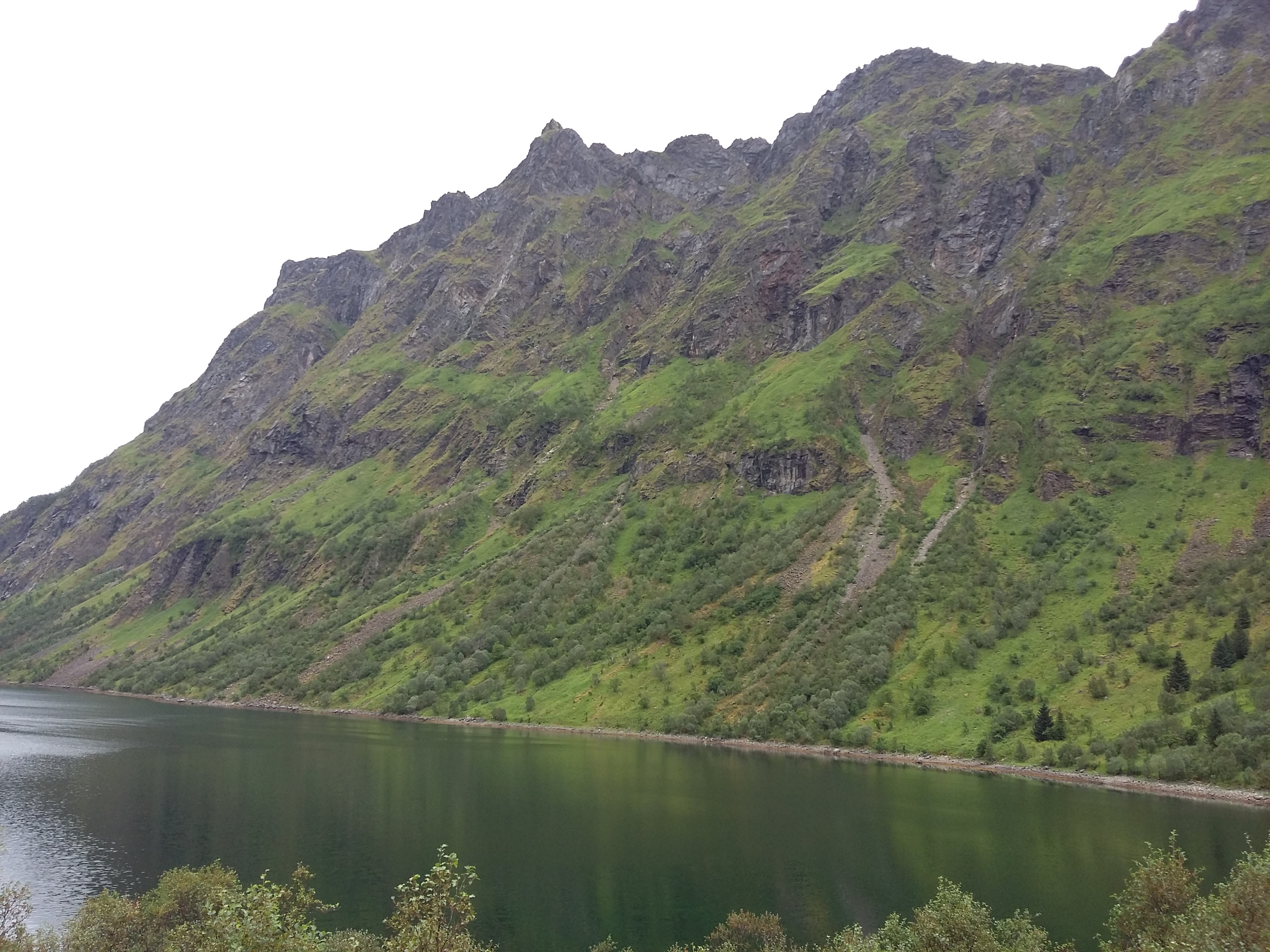 We were glad that we hadn’t opted to take the alternative route from Harstad yesterday, which would have brought us to this ferry crossing and the prospect of navigating this narrow stretch of road.