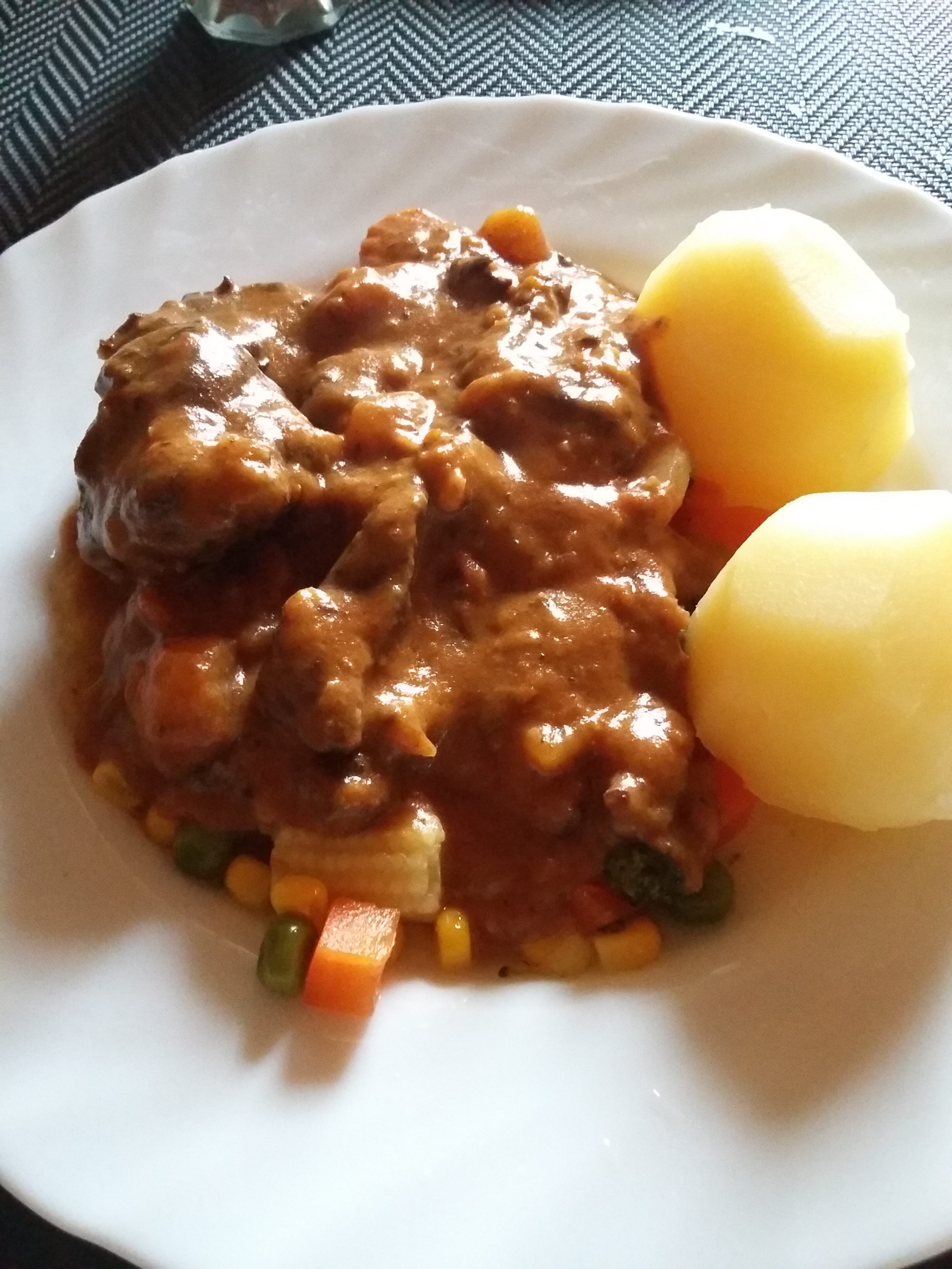 Neither of us had any idea how it would taste, but we were both pleasantly surprised. A thick meaty stew made with simple vegetables and a few boiled potatoes; a warming dish on a cold, wet, dank day.
