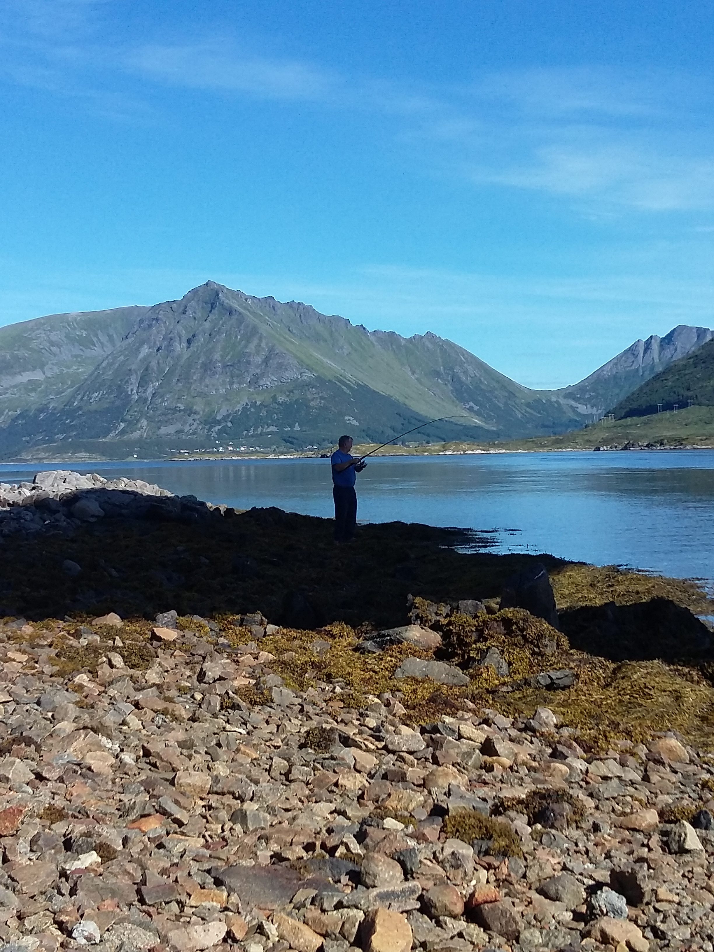 We made two stops to test the fishing rod. Once just over the Gimsøystraumen Bridge and the second near the other bridge, which connects with the E 10 and onwards to Vestvågøy Island.