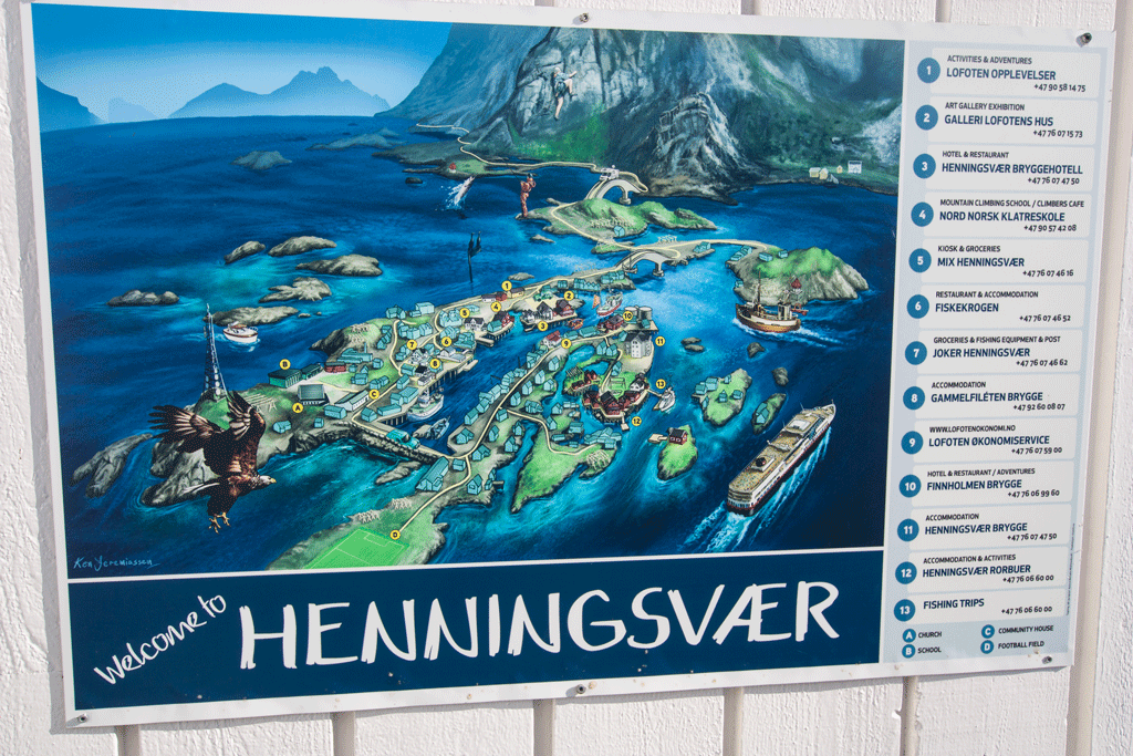 Our homework told us that Henningsvær is a fishing village located on several small islands off the southern coast of the larger Austvågøya Island, linked by a bridge.