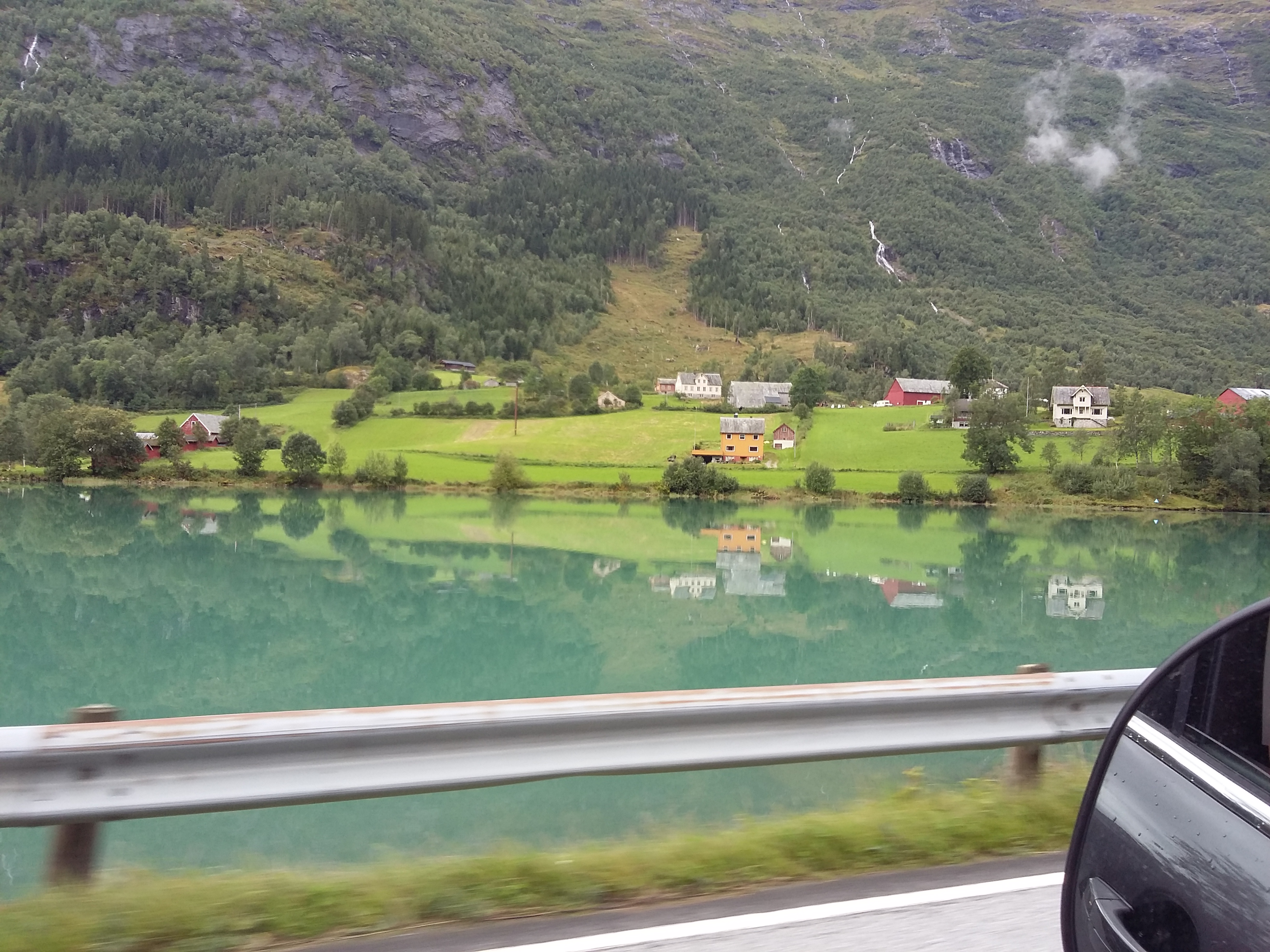 After passing through Stryn, Loen and then Olden, we turned left onto the FV724 which within a kilometre became extremely narrow in places with frequent tourist coaches returning from Briksdal Glacier coming in the opposite direction. Again we were treated to stunning views.