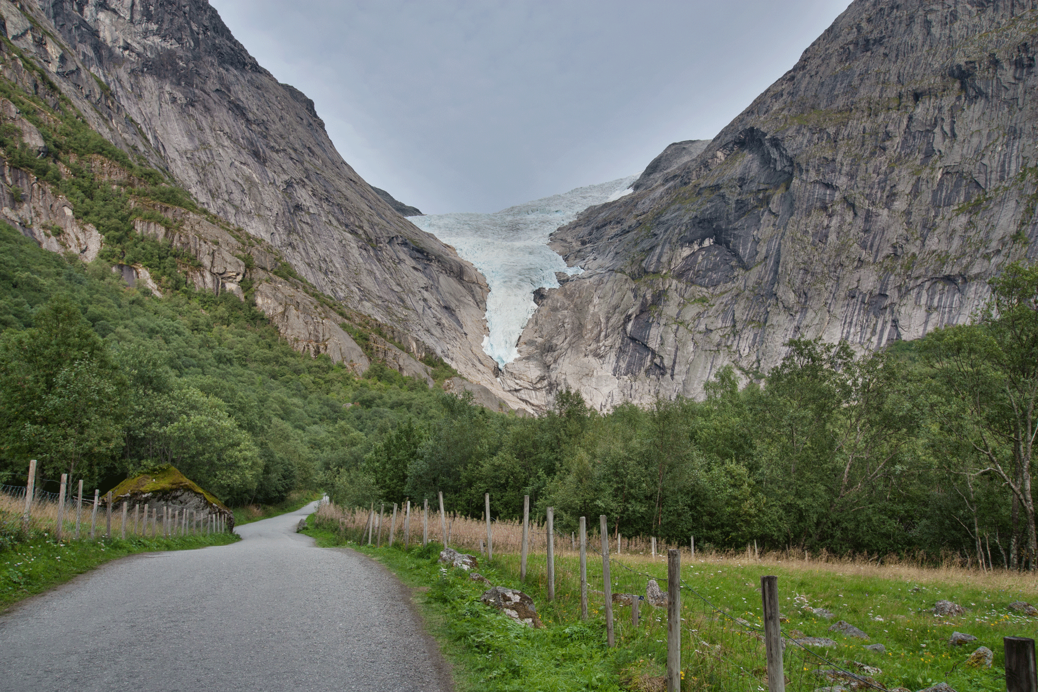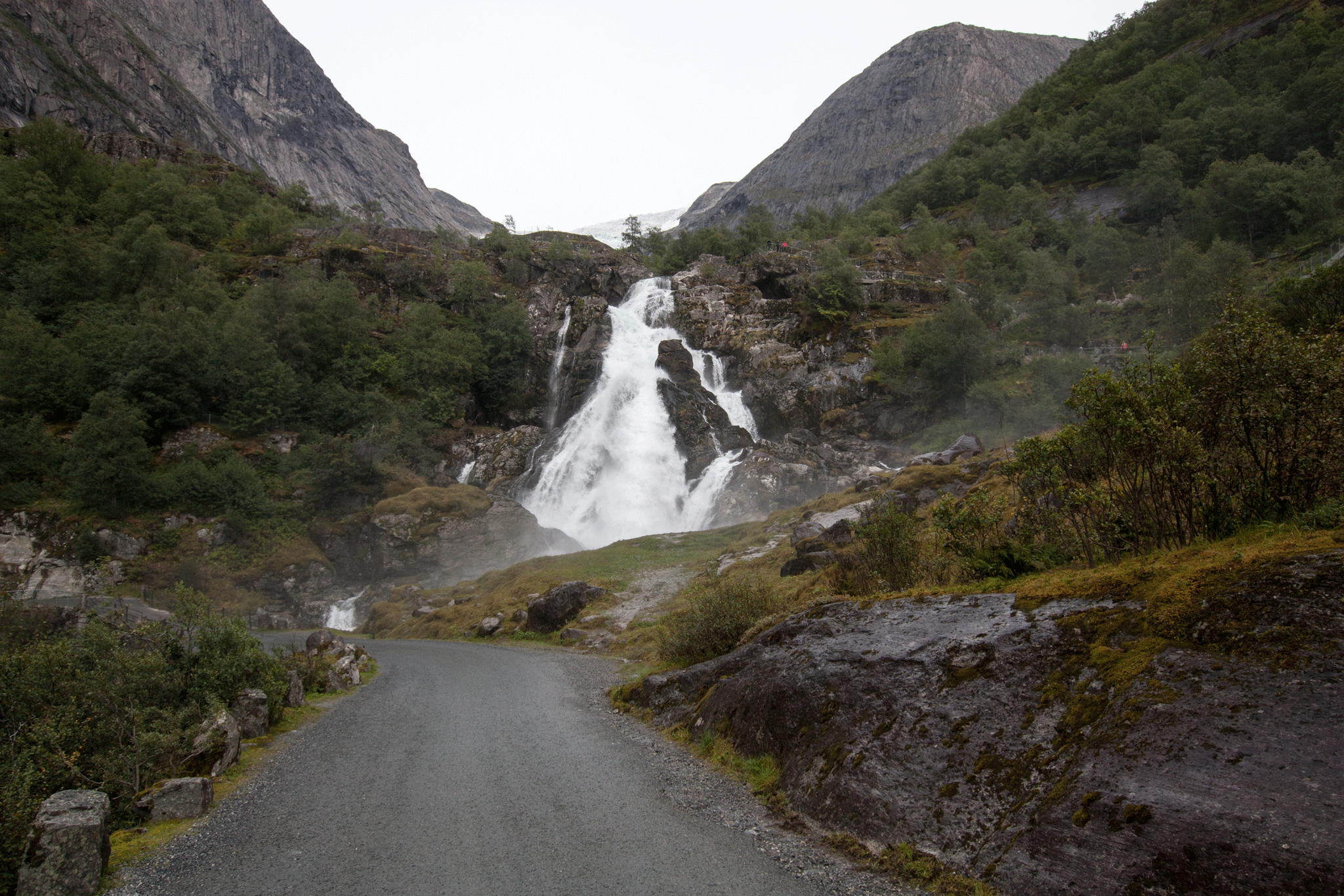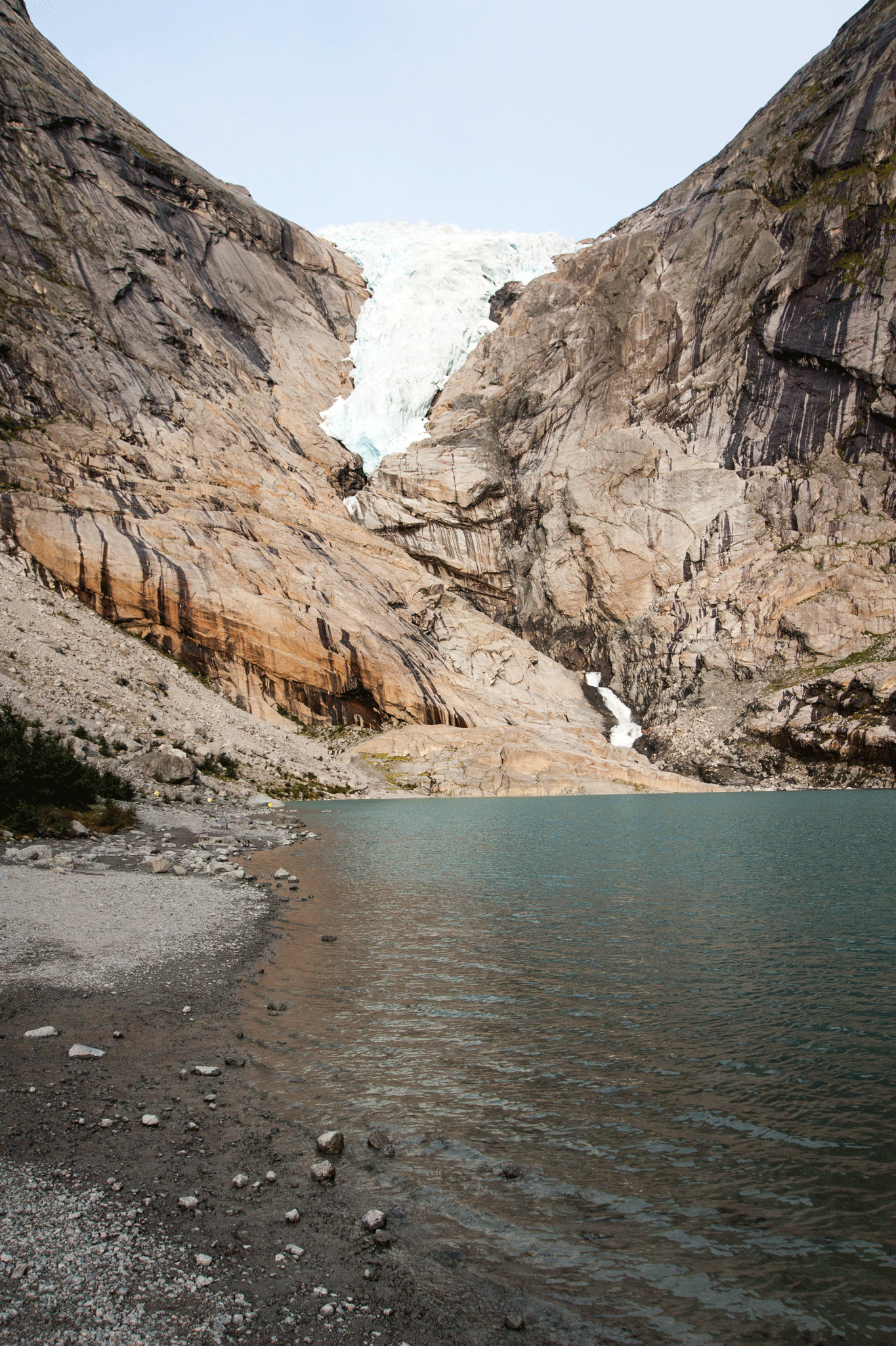 On arrival the young man in reception suggested that we had enough daylight left to visit the glacier so after a quick setup, we started out on the, at times, steep 45 minute climb up to Briksdal Glacier.