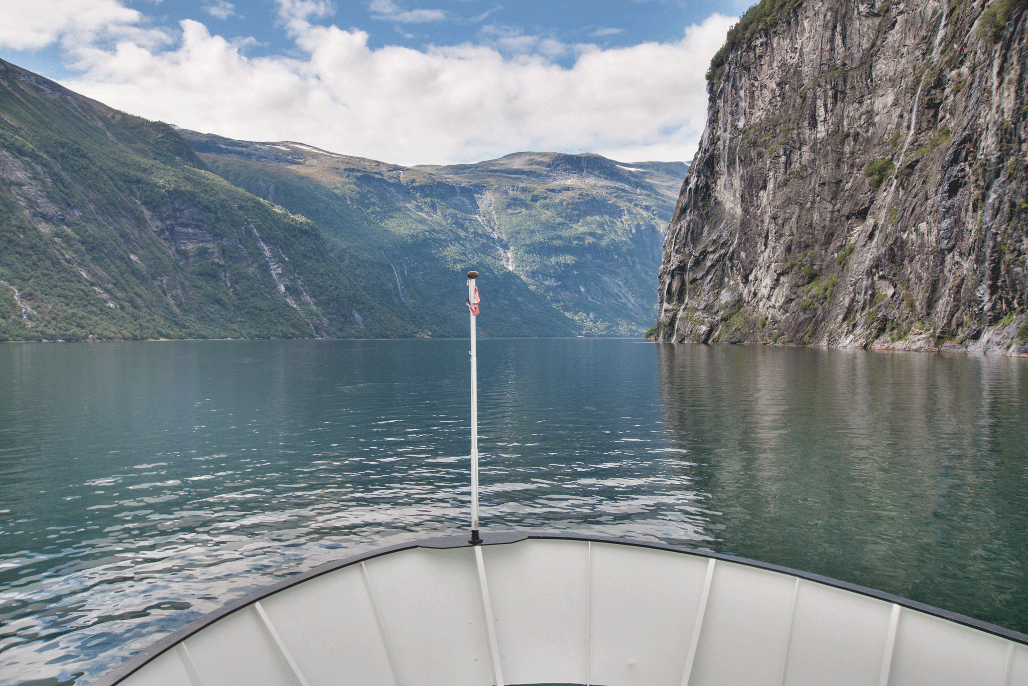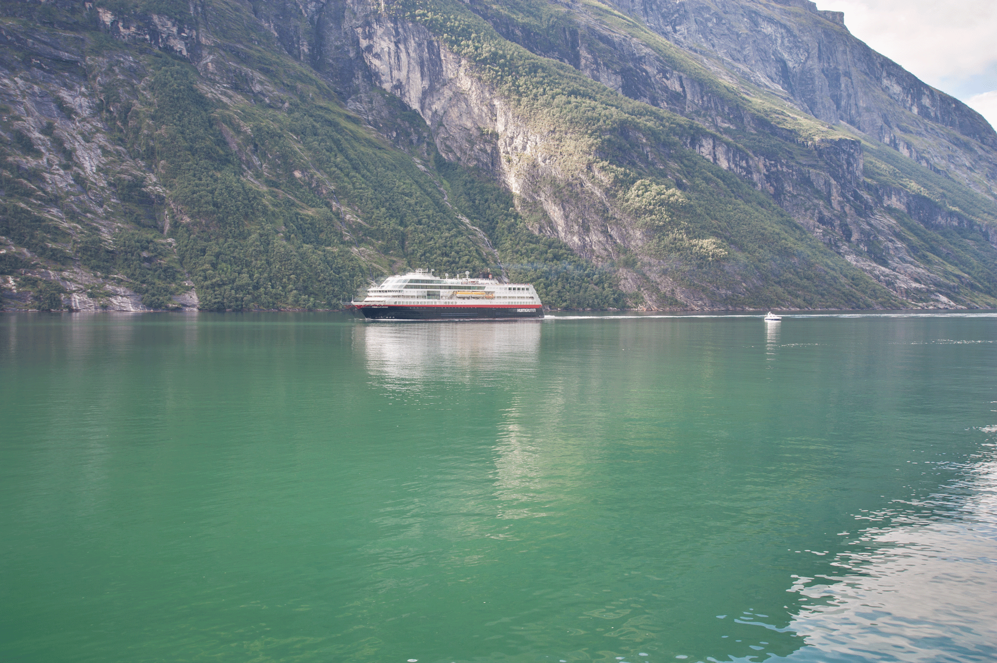 A short while later the daily Hurtigruten ferry sailed by on its’ daily visit into Geiranger. The scenery through the fjord is truly amazing and it’s impossible to convey the massive size of the place.
