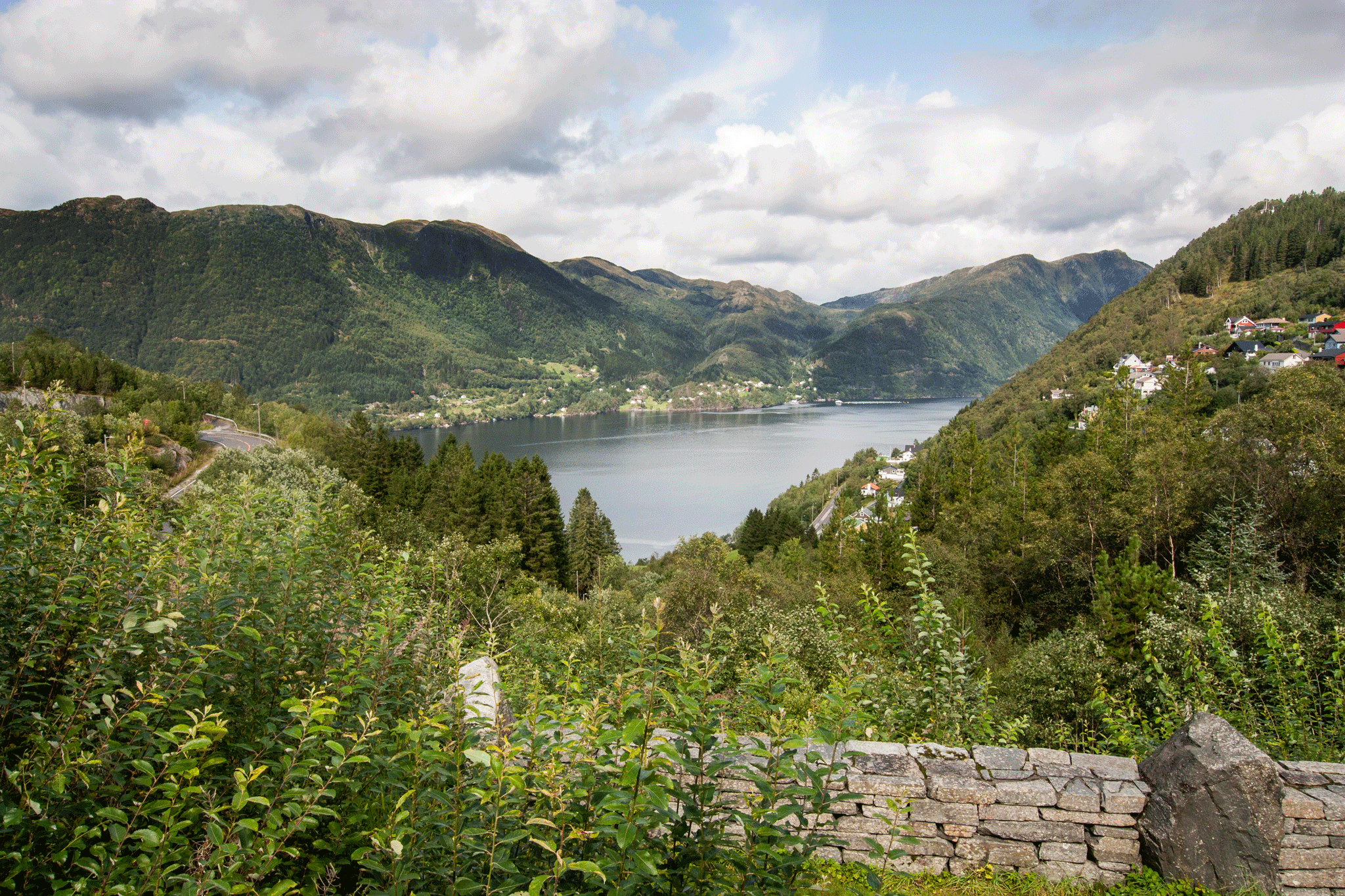 Approaching Bergen I noticed a layby with a bakery in it with lovely views so we stopped again for a late lunch of filled rolls and schillingsbollen. A snip at near £20!