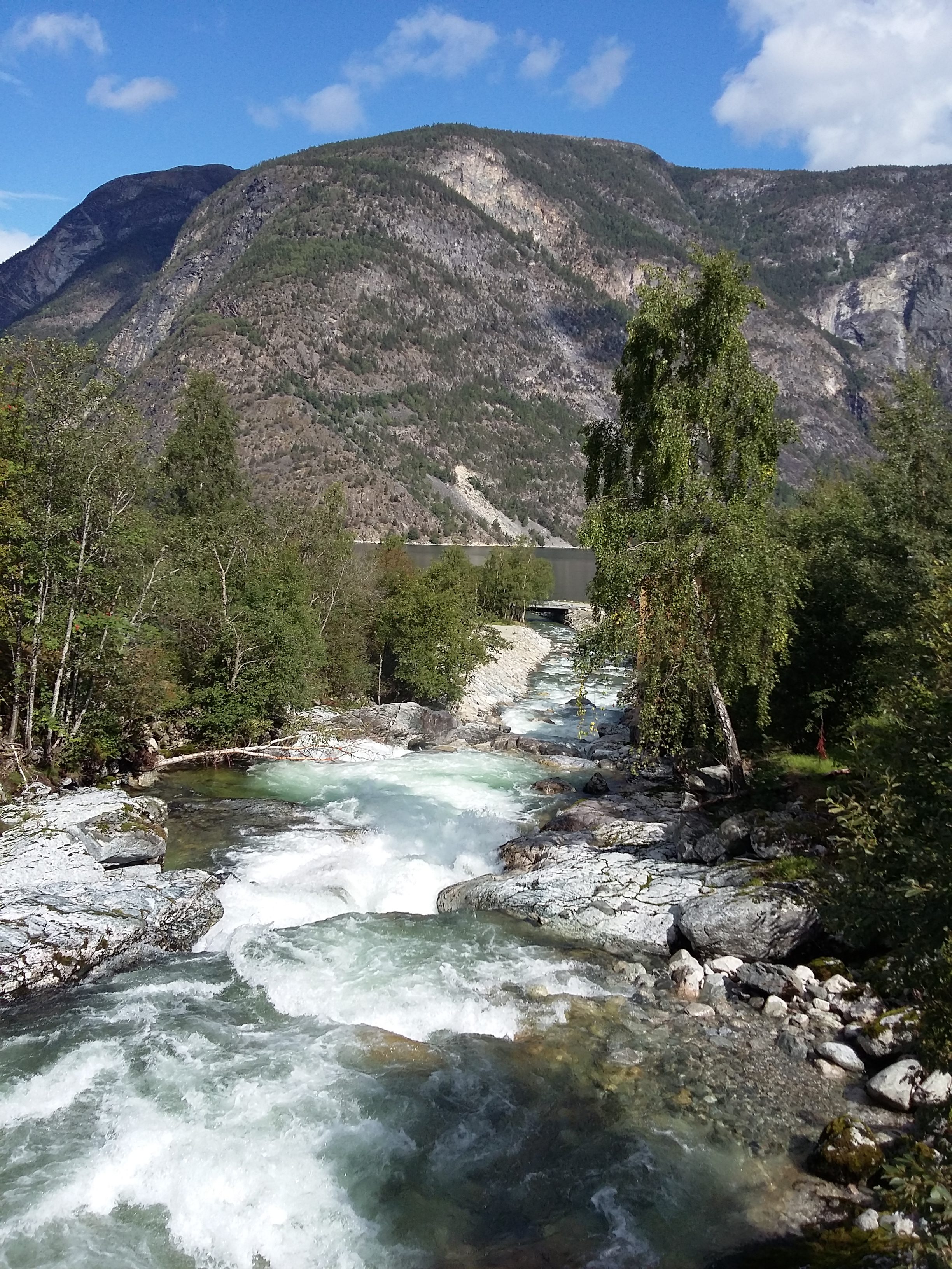 Finally crossing a small bridge we came to the arm of the fjord where the road leads to the large town of Lærdalsøyri in Sogn og Fjordane County.