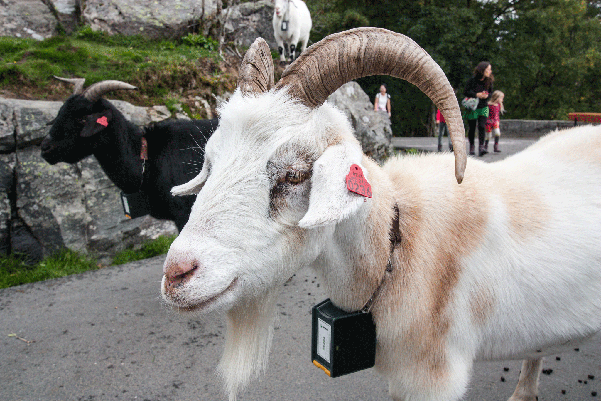 What we hadn’t expected was to be greeted by several goats, within a restricted area. The Fløyen Boys or Fløyenguttene. 9 billy goats all born in 2011, all wearing solar powered collars, which keep them in a virtual fence. They love to graze and are natures’ natural lawn mowers 😉