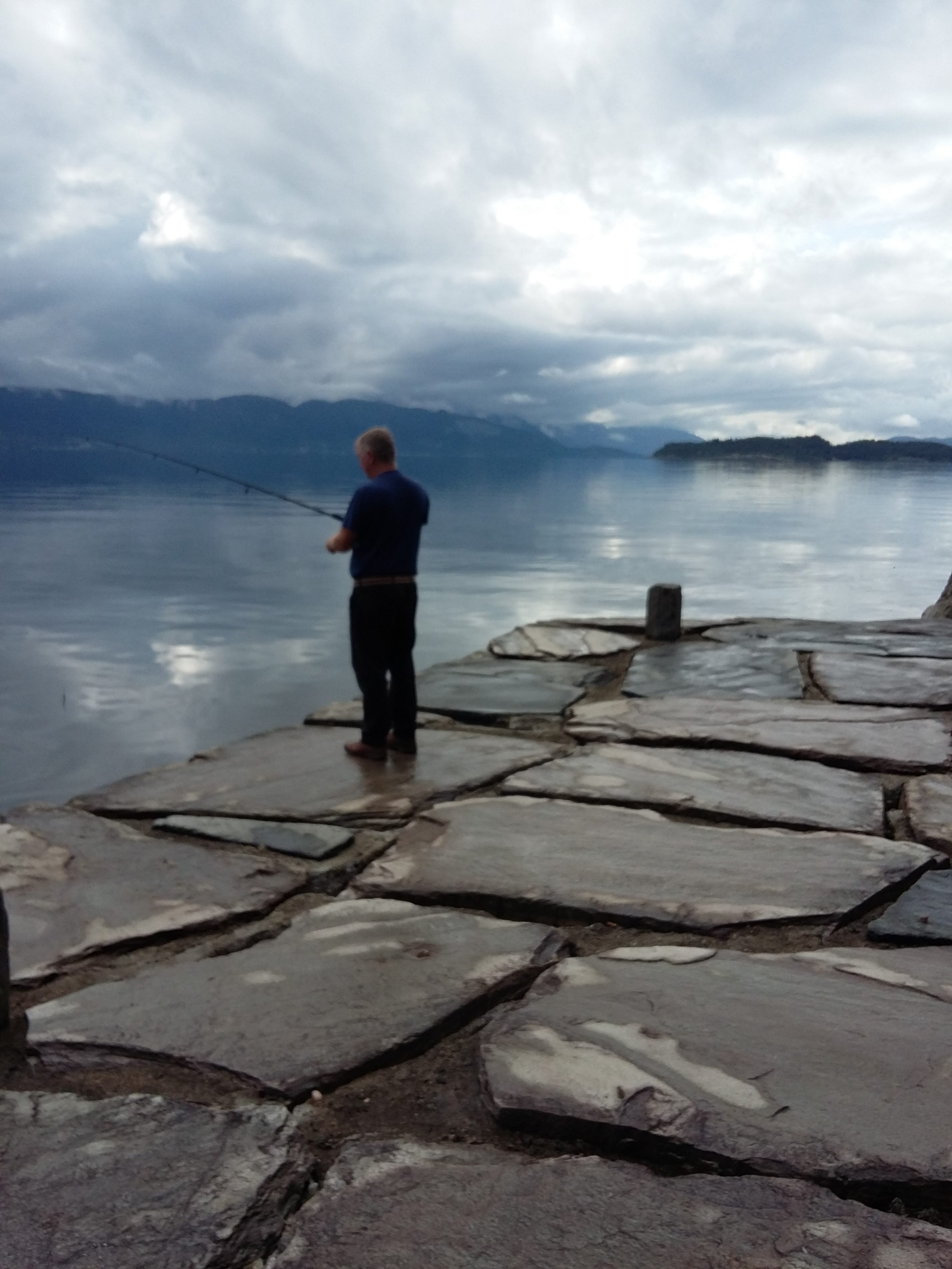 Just before crossing the Hardanger Bridge we entered a tunnel and we were both amazed to find that there is a roundabout ‘in’ the tunnel! We had not seen this before. After crossing the bridge is another tunnel which also has a roundabout in it. London buses 🙂