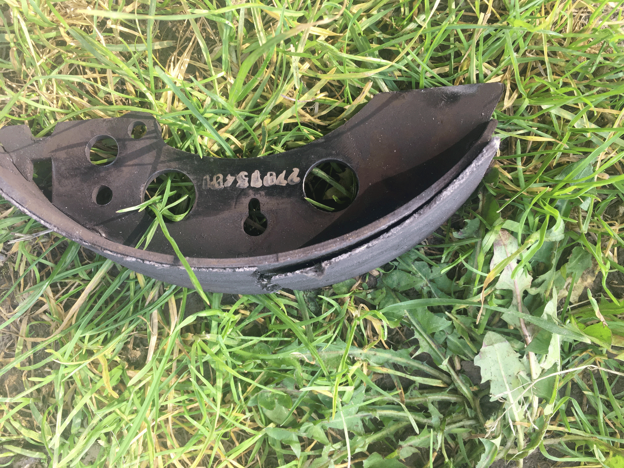 As we entered Kinsarvik, there was a large car park at the ferry terminal so I pulled in, jacked the caravan and removed the left hand wheel and brake drum. The thin linings had detached from the shoes and it was obvious we would not be going any further today.