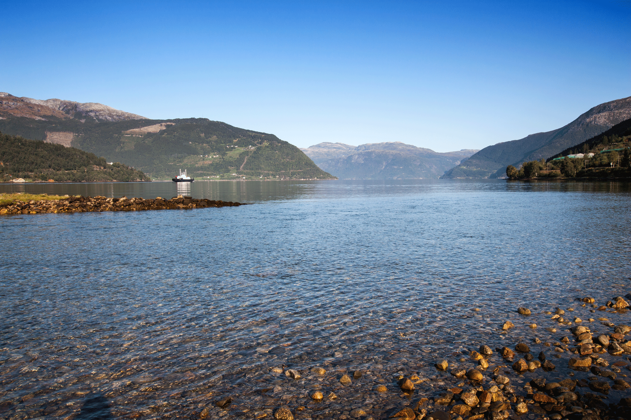 The 13 road disappeared into the fjord at Knutsvik so we joined the queue for the ferry to Hjelmeland. We hadn’t long to wait and as the crossing is only 10 minutes we stayed in the car.
