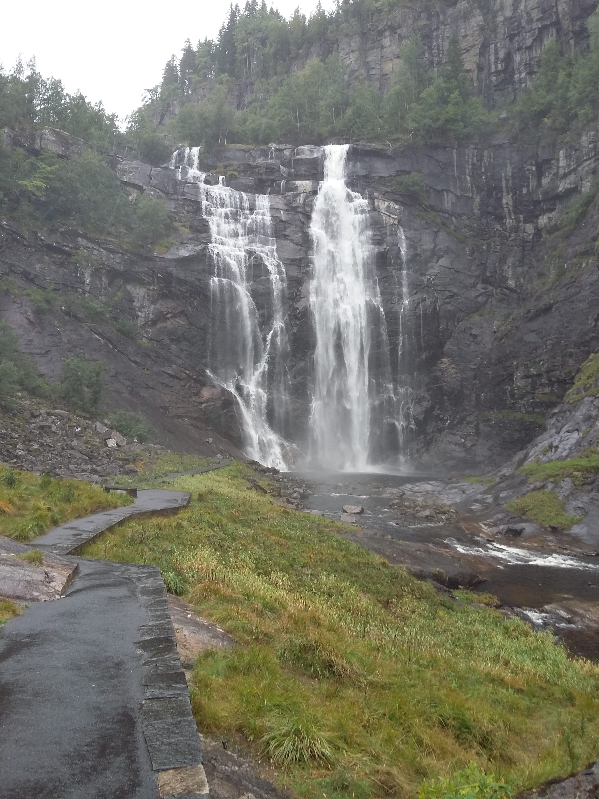 On our long trip back from Bergen on our mission of mercy to get replacement parts for the caravan we decided to break up the last part of the journey by swinging by the Skjervsfossen waterfall that was mentioned on the Hardanger National Tourist Scenic Route. We seem to be turning into waterfall enthusiasts!