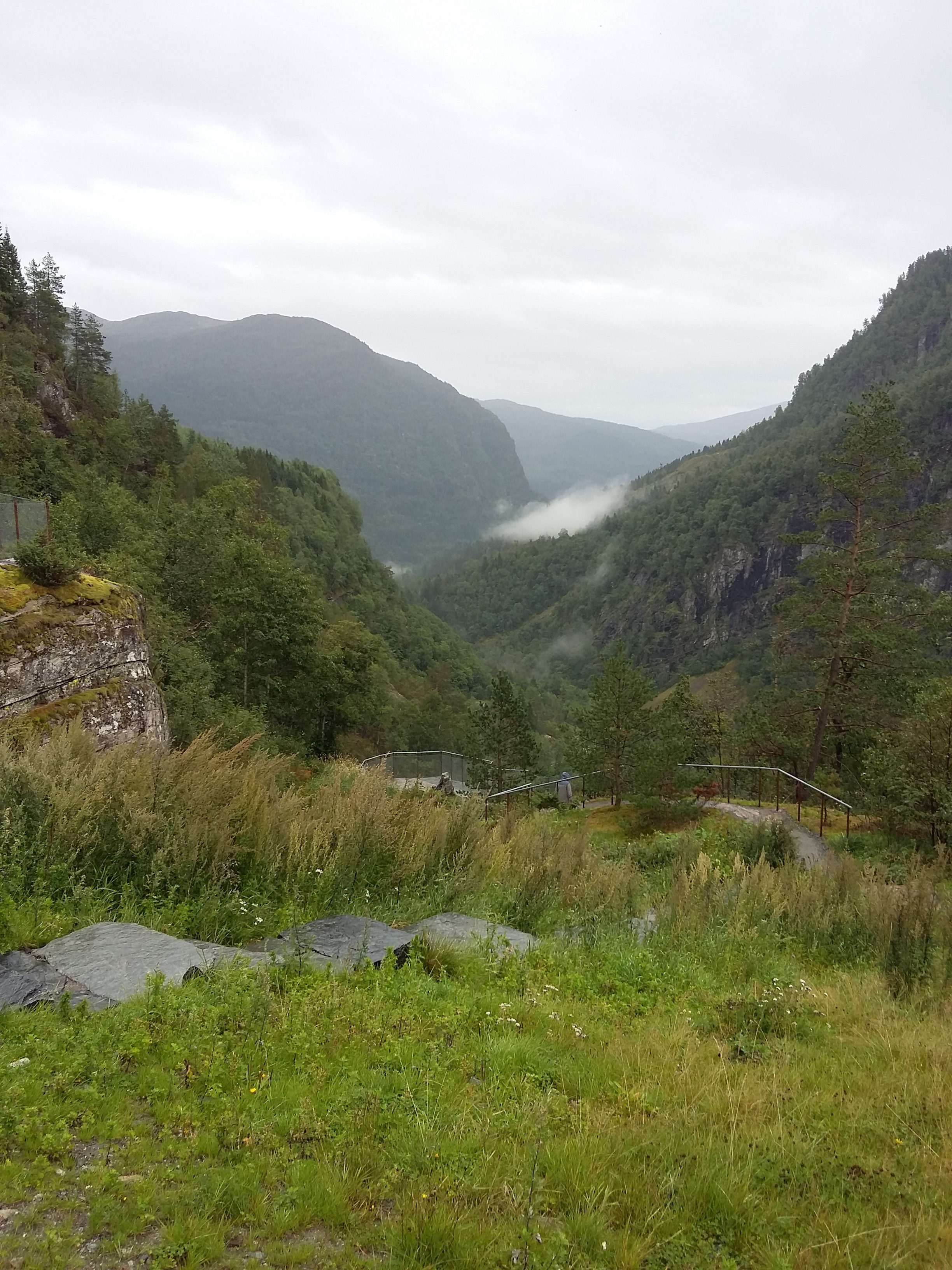 Continuing down on the road we rejoined the 13 and made our way around the Granvinsvatnet, a huge lake, which, if the weather had not been so bad, would have allowed us to take some photos of some of the beautiful lakeside properties.