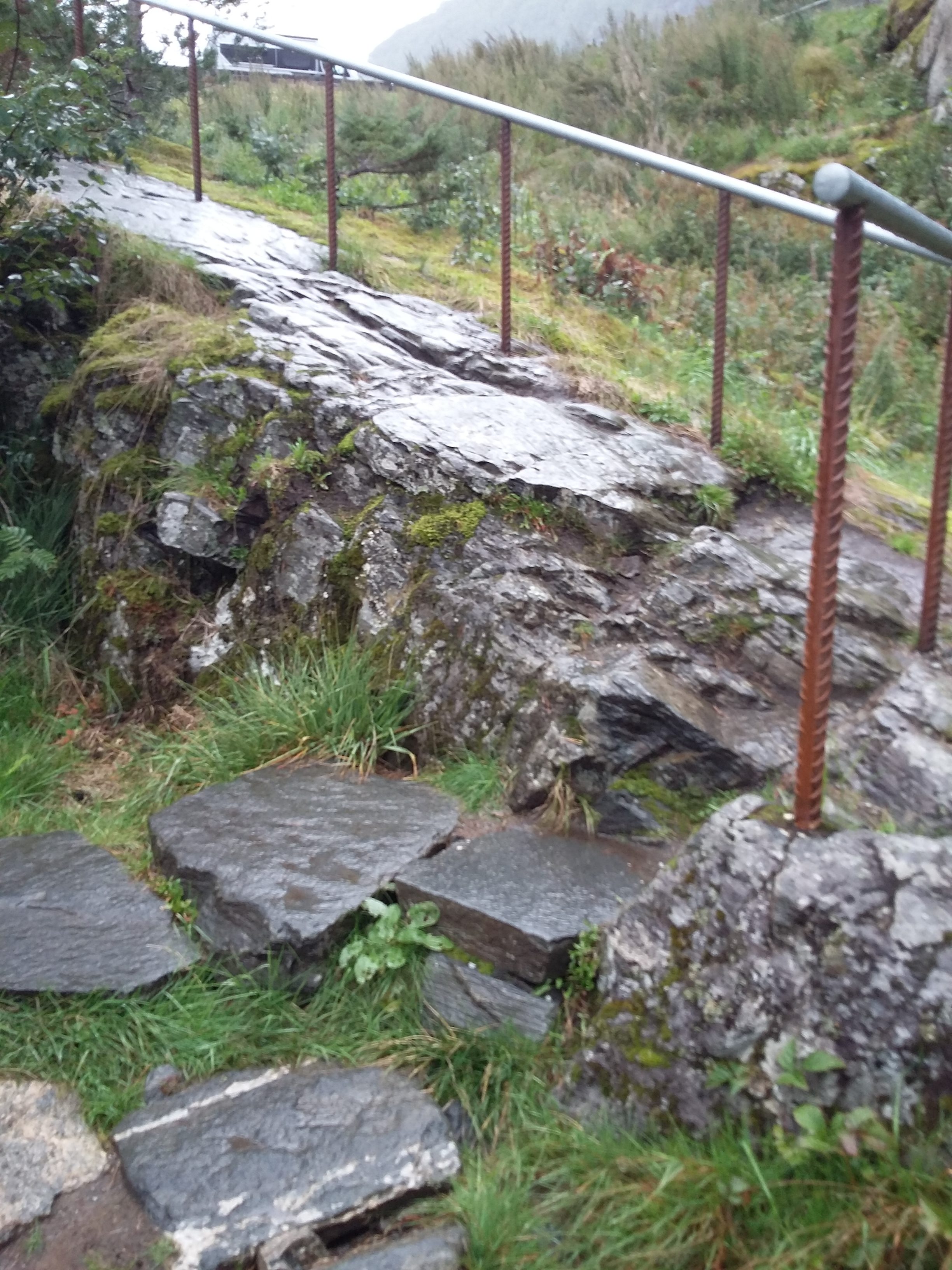 As it was pouring with rain we were not surprised to pull up in the small car parking area at the top of the waterfall (Kanten, the Edge) and find only one other car.