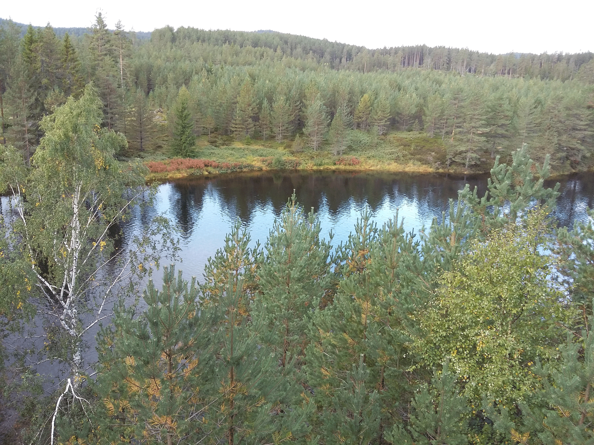 The wind died down during the day but the rain continued most of the time. It seemed to be triggered by me getting the fishing rod out of the car. I bought a fishing licence to cover the week, (required for freshwater fishing in Norway), for 125NOK but caught only one small trout that I put back.