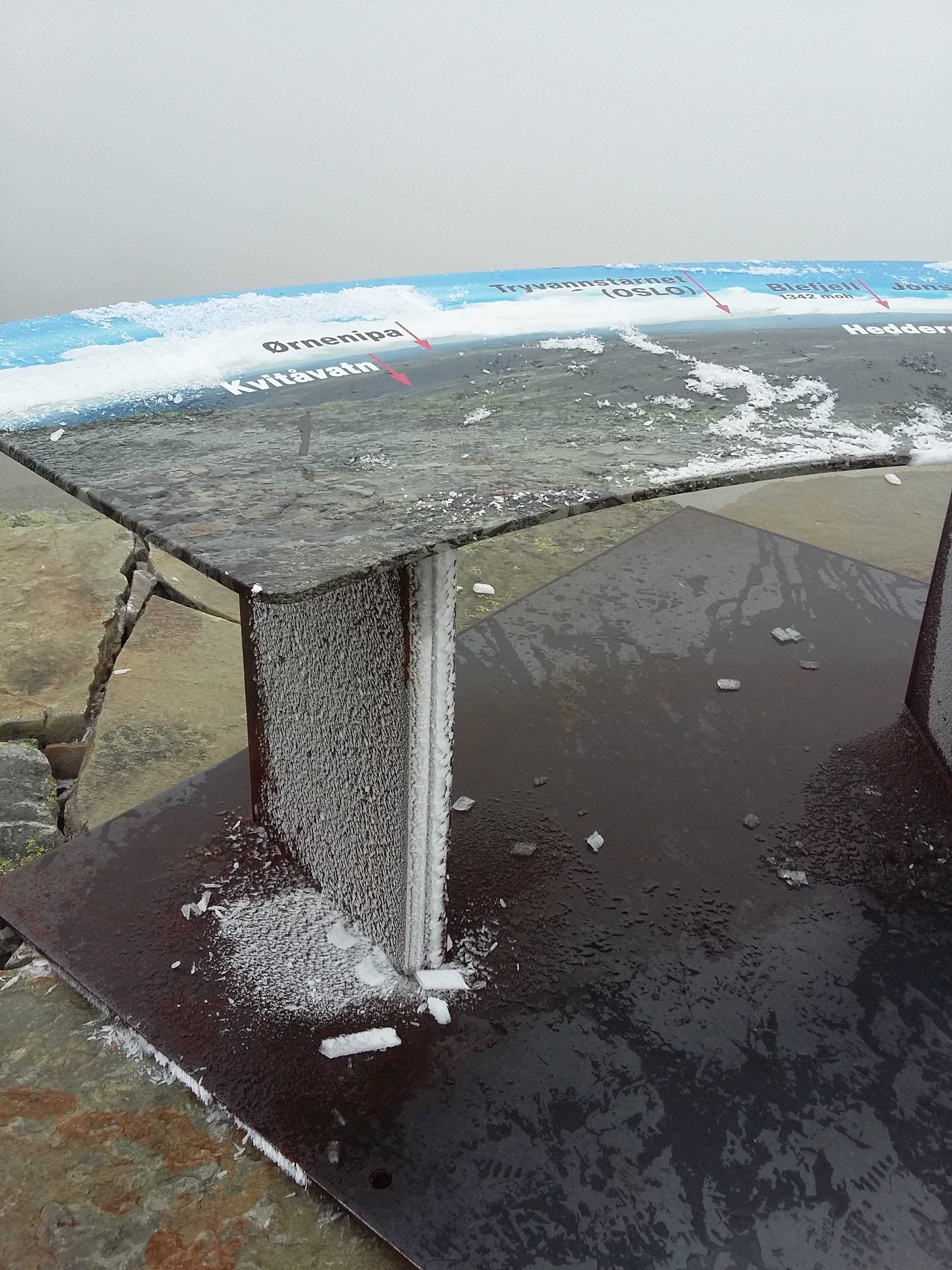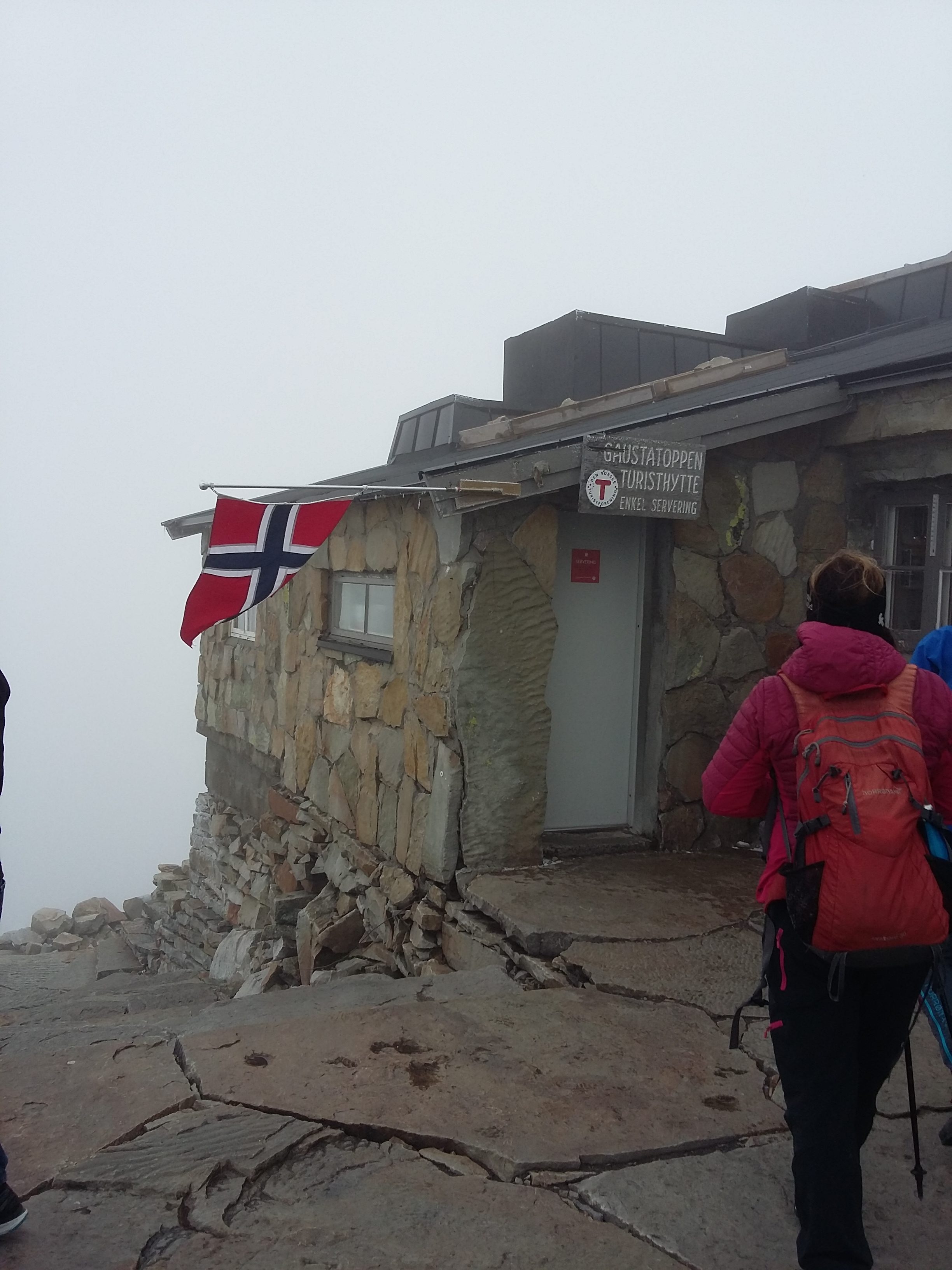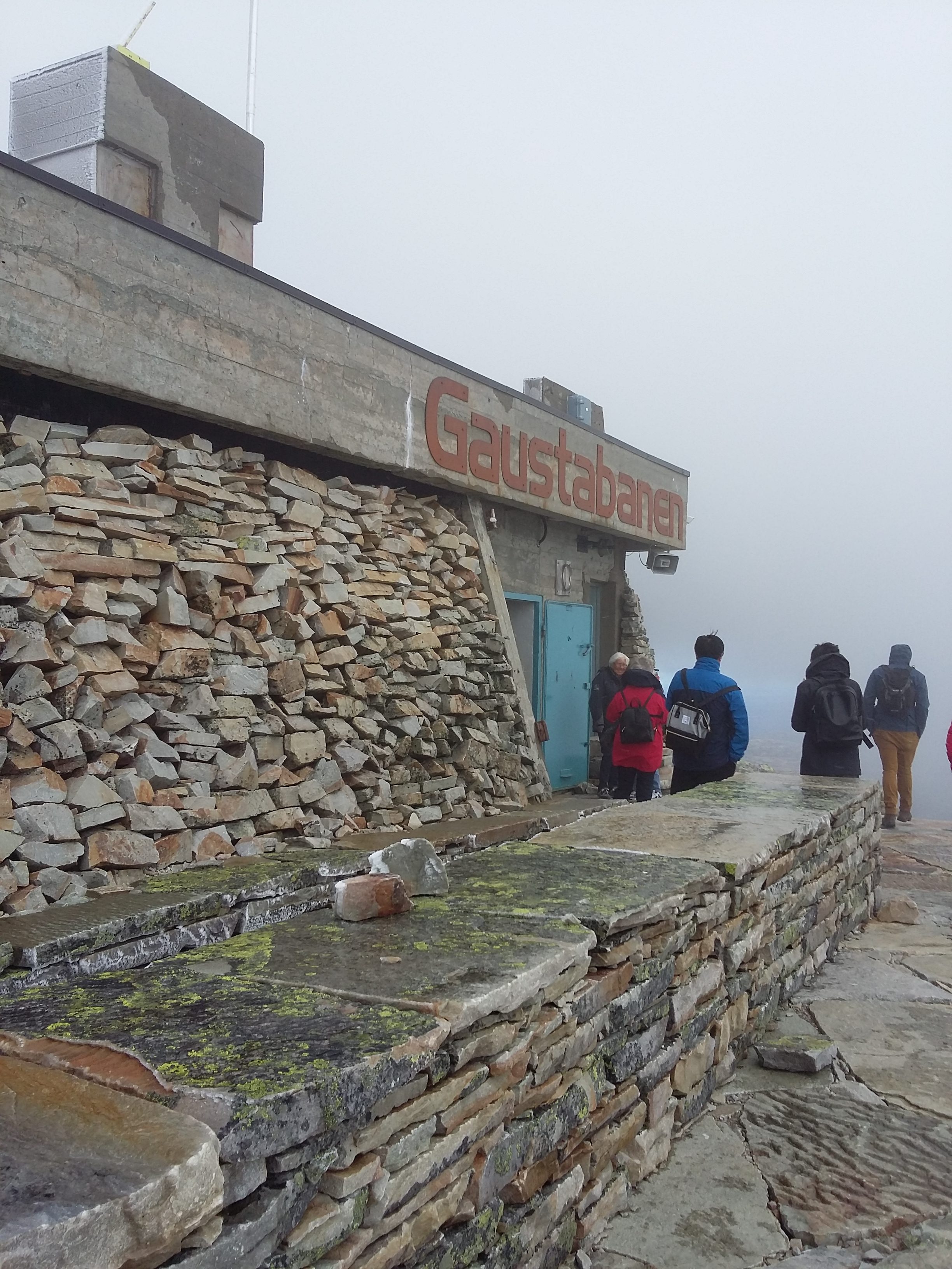 The temperature had now dropped to about 4 degrees and we knew that it would become a lot cooler at the summit and had come prepared with appropriate headgear, plenty of layers but no gloves! We had our fingers crossed for some blue sky and the chance to enjoy the view of as much of Norway as possible.