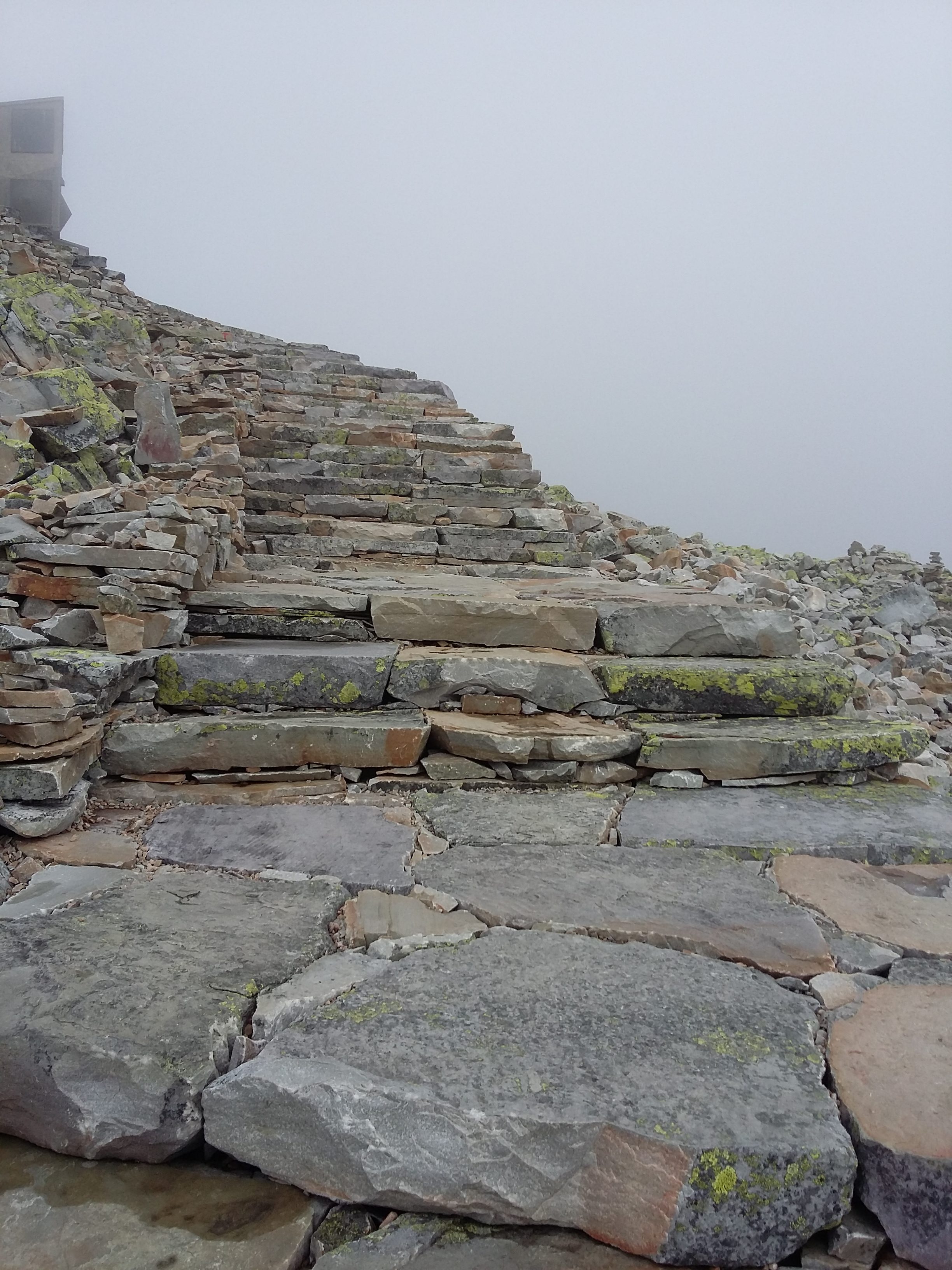 On exiting the funicular we made our way along a long tunnel towards the great outdoors! Despite our hopes and wishes of blue skies we were met with thick low cloud and quite a brisk wind chill!