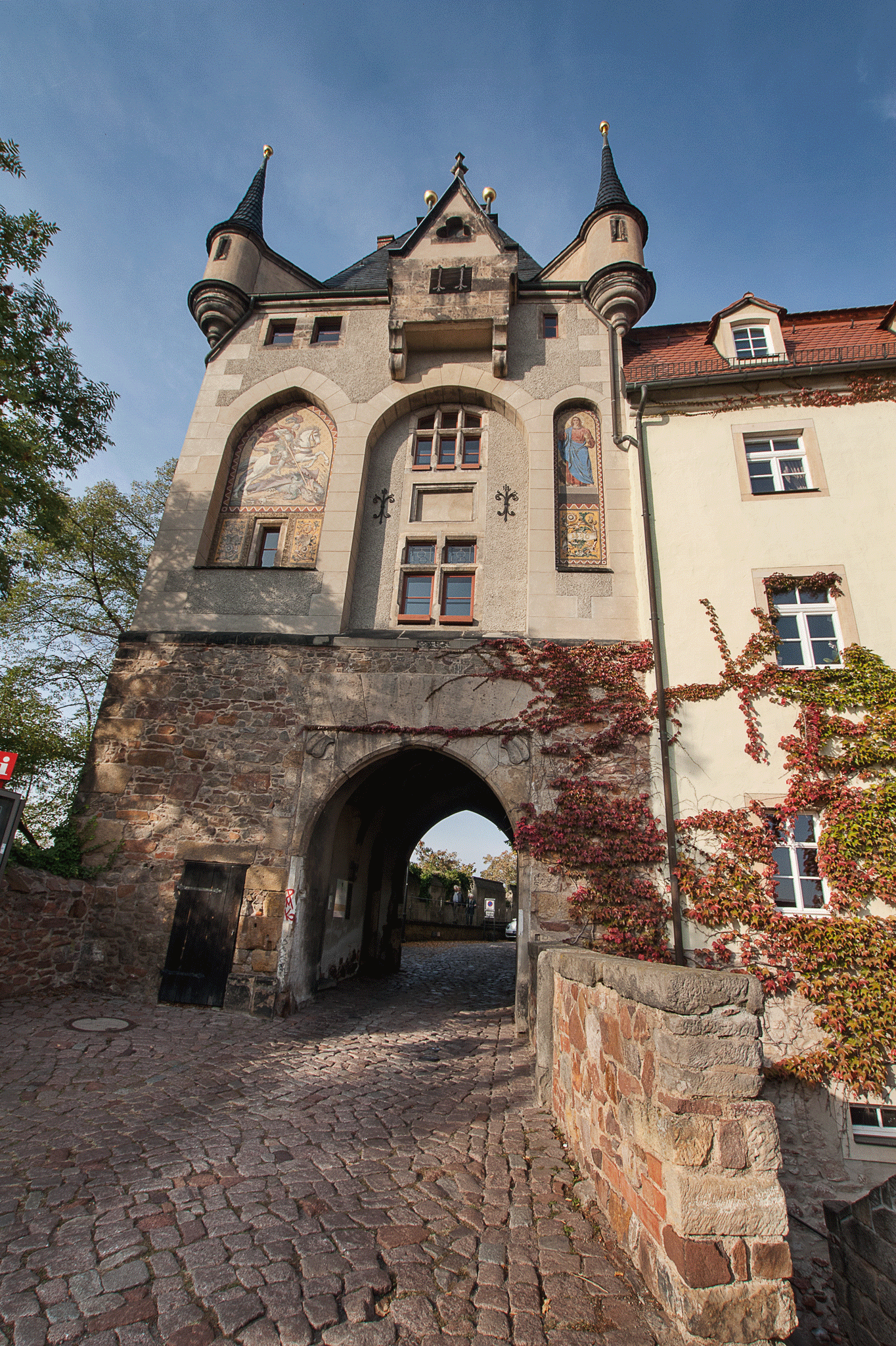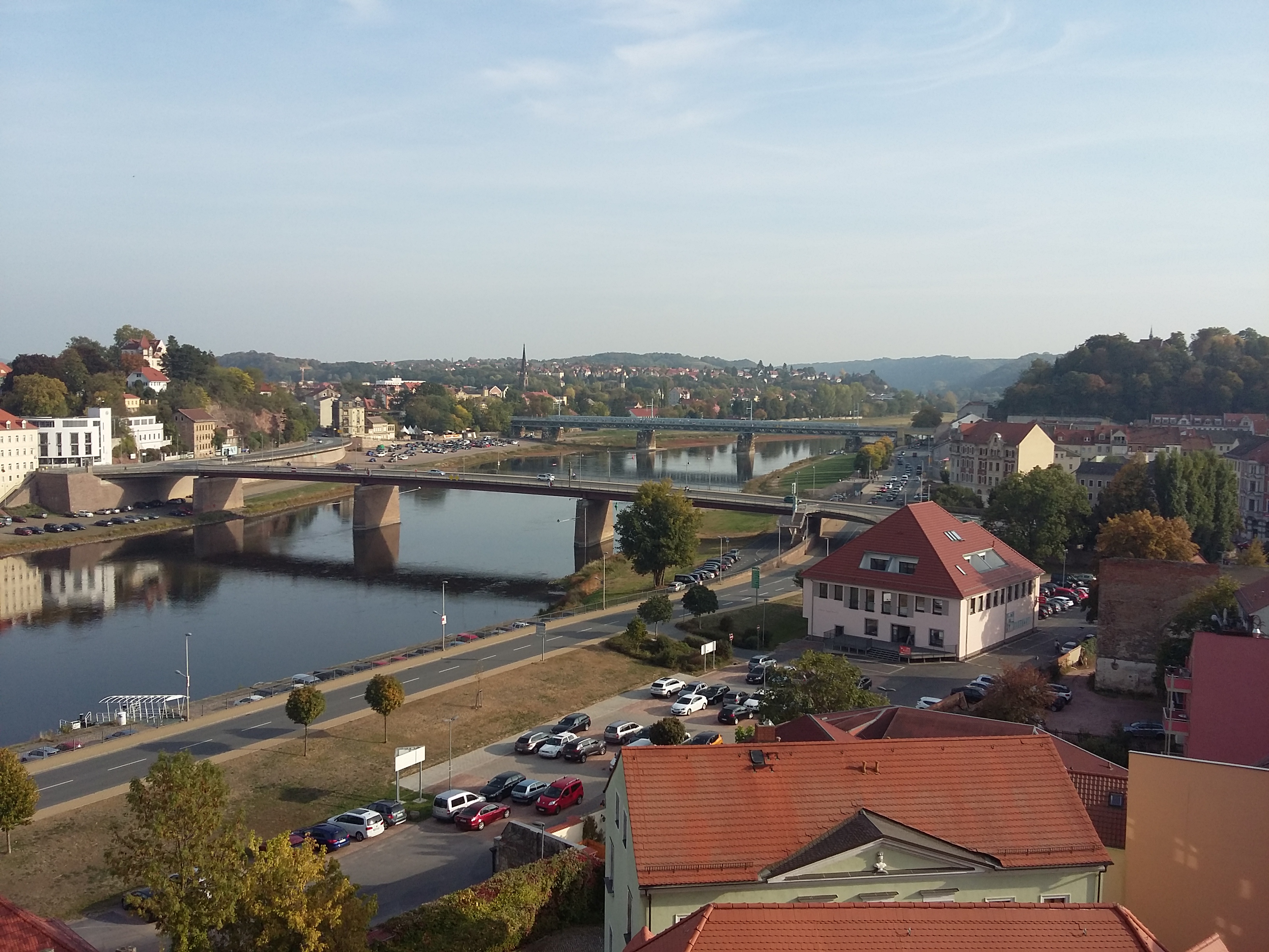 After making our way over to the castle we attempted to find a parking space in the narrow streets. At one point we were seriously Garminned and the satnav guided us up a street barely wider than the car. Once parked we followed the signs for the historical walking route around the castle walls and had fine views over the River Elbe.