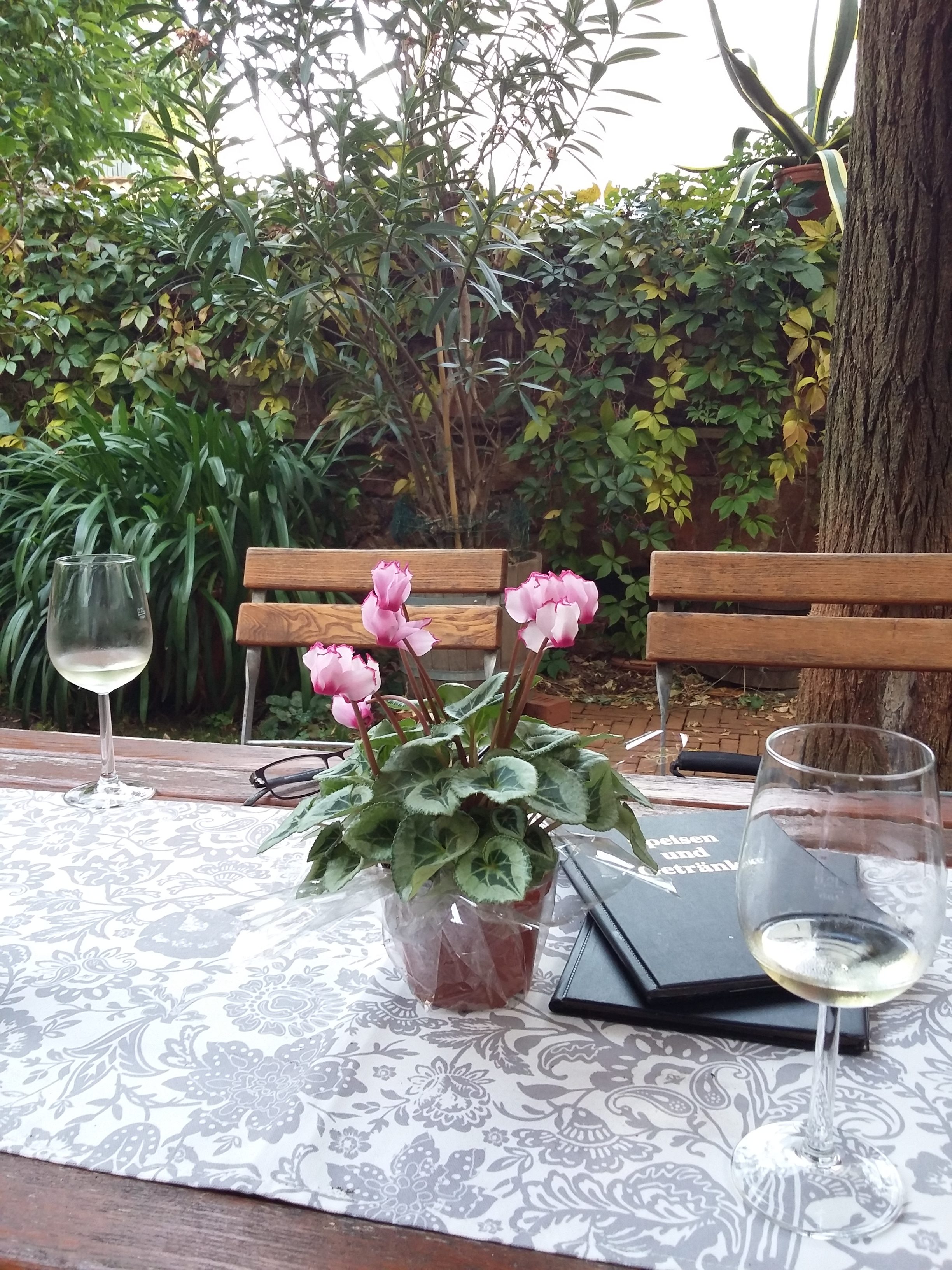 Feeling suitably exercised we descended down into the lovely town square and rewarded ourselves with a glass of local white each before making our way back to camp.