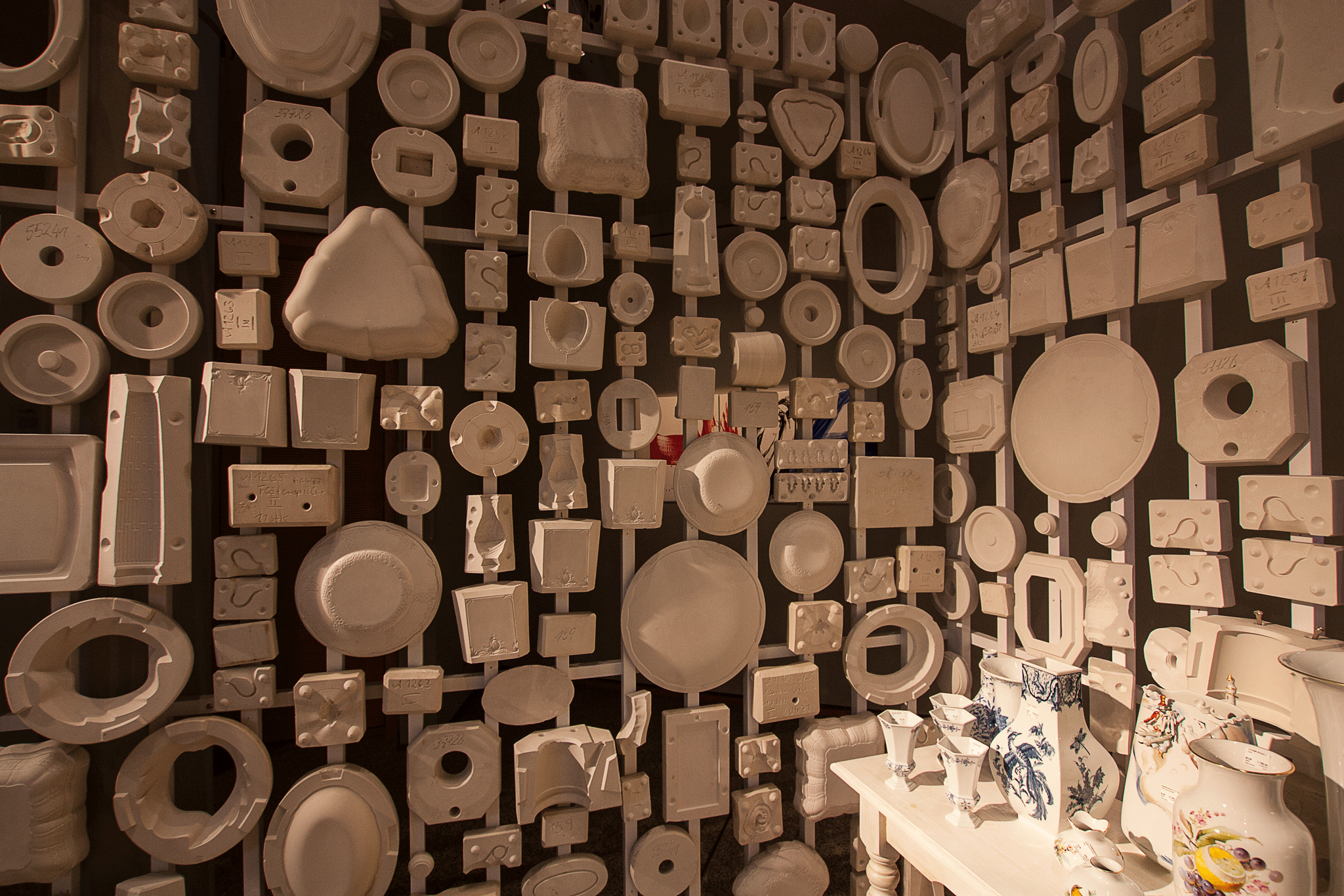 A display of some of the thousands of moulds the craftsmen and women have used over the years stood to the side.