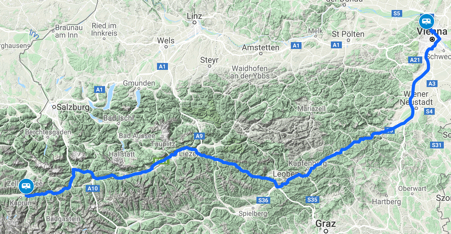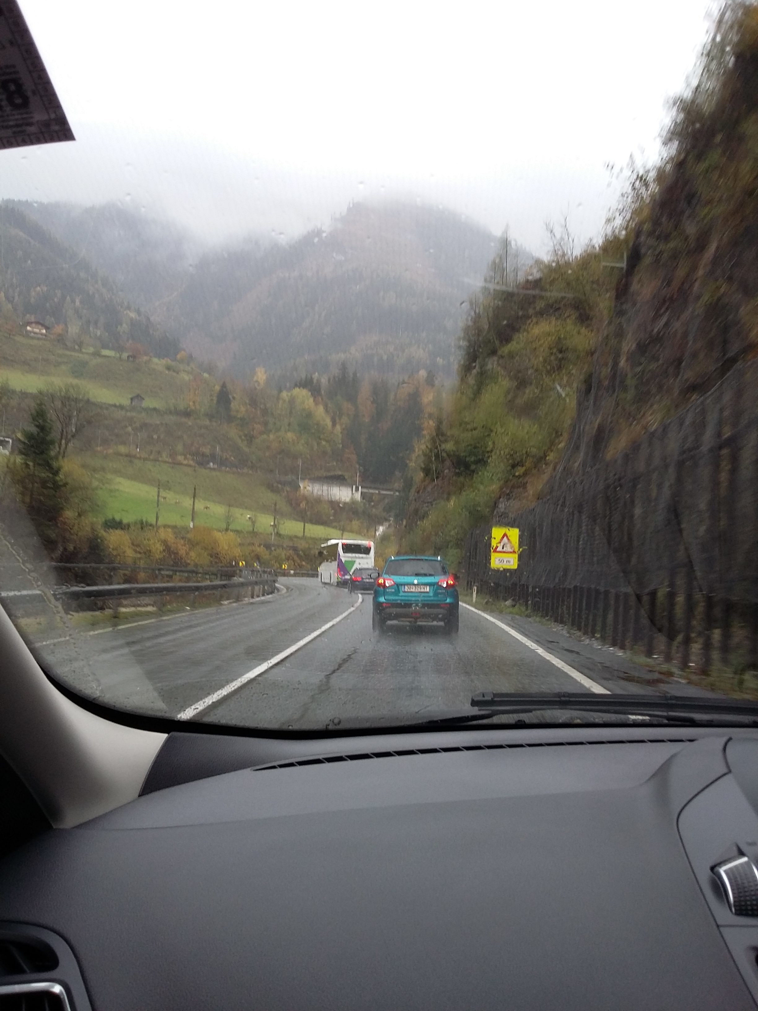 We set off, initially in the wrong direction (navigation mismatch 🙂 ), and were almost immediately surrounded by heavy morning traffic, in awful conditions on the motorways around Vienna. Progress was quite slow due to the huge amount of lorries and overtaking restrictions.