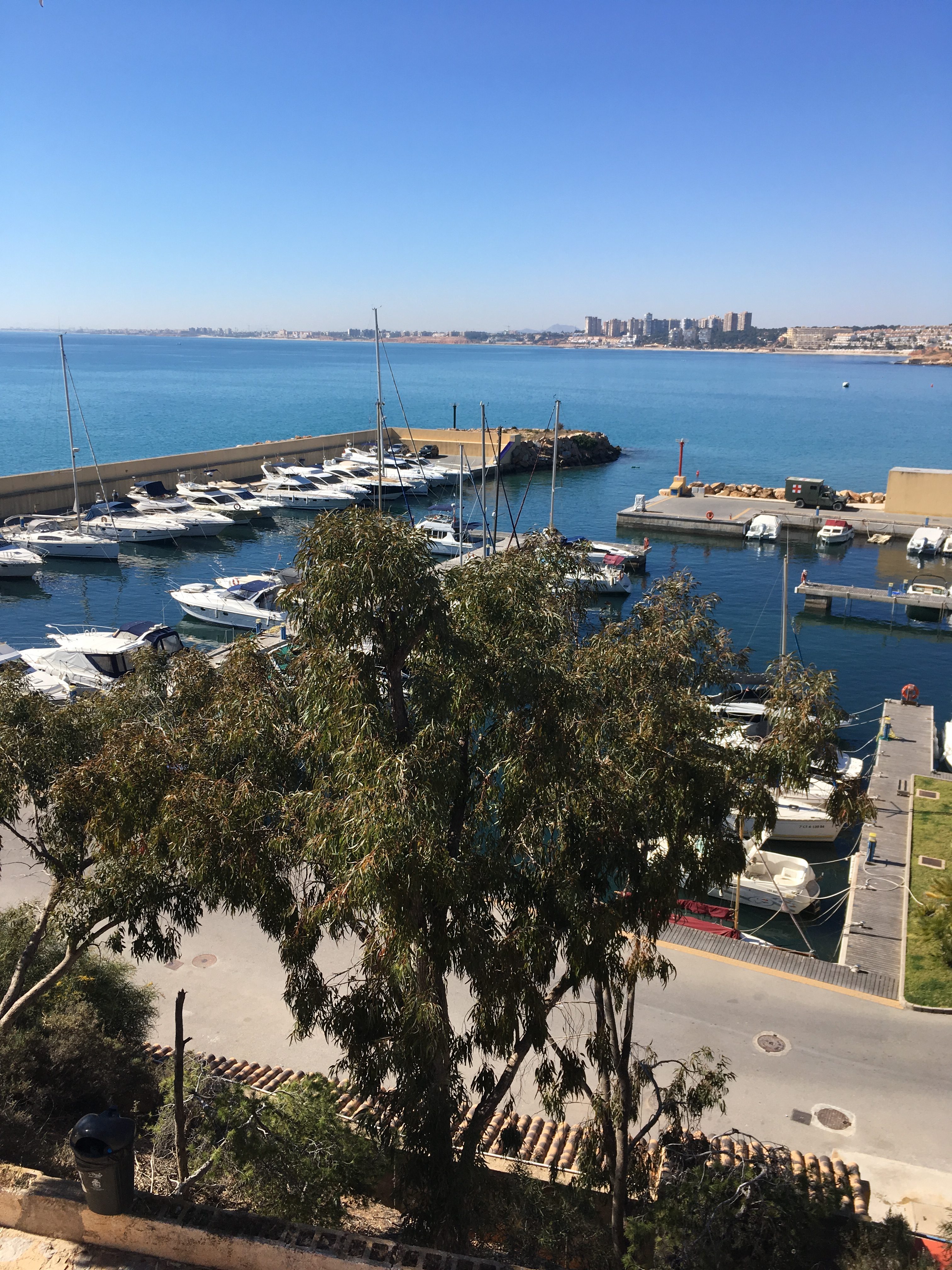 We managed to find some free parking overlooking the newly revamped Cabo Roig Marina, next to the 16th century watchtower, which is now part of a restaurant complex, with stunning views out to sea.
