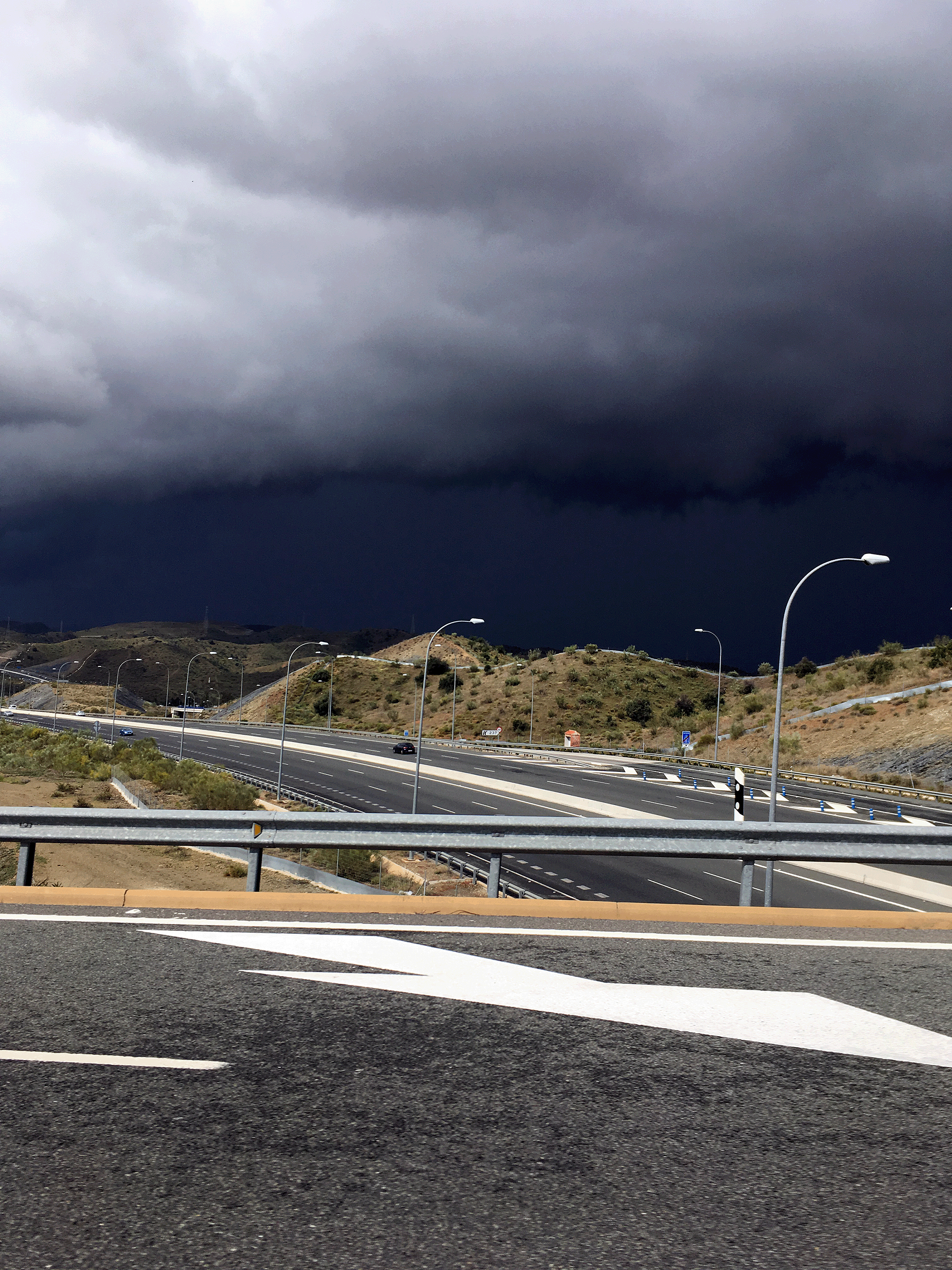 We started on the near 400km route in reasonable weather but it was clear that angrier weather was approaching from the west. As we climbed up into the hills the skies grew darker and darker. Kim took pictures from the car window and I think it may be the darkest sky I have ever seen.