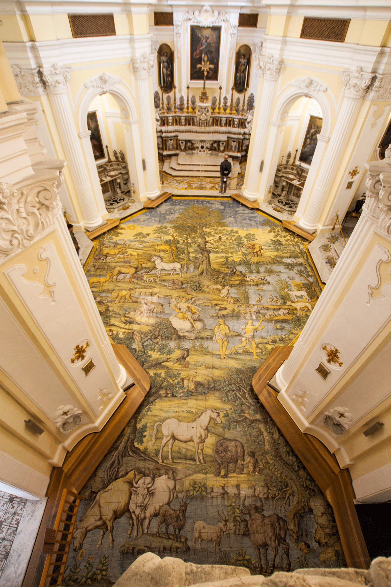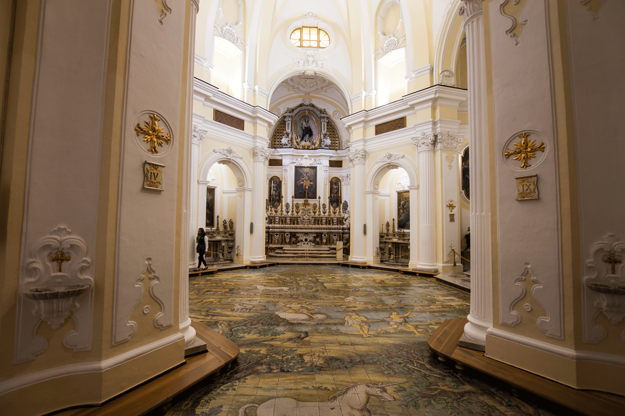 The church received a “monument” designation due to its notable majolica floor mosaic.