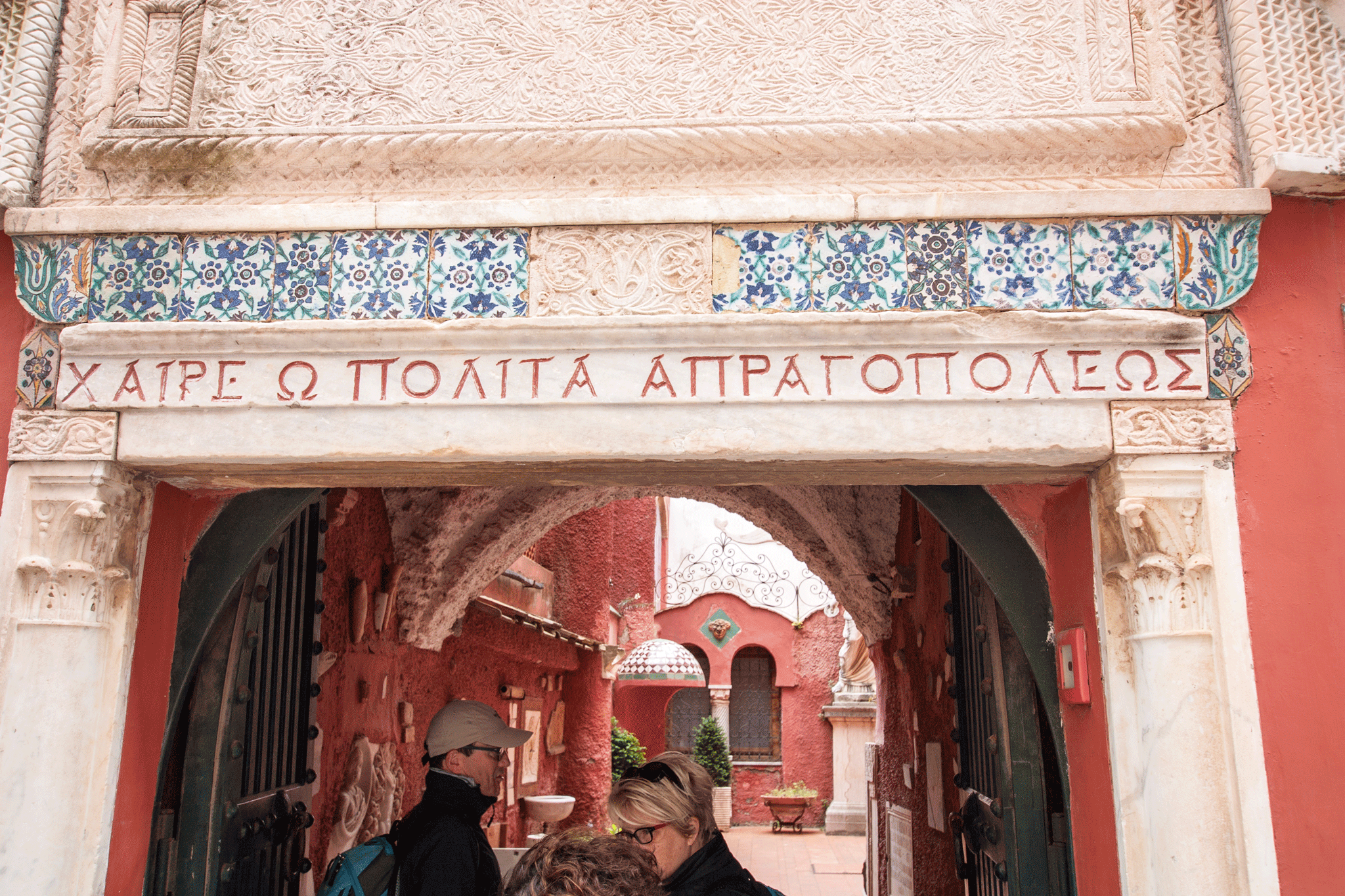 The inscription in Greek over the door reads “Hello, inhabitant of city of sweet idleness”. We didn’t enter the museum but the courtyard was impressive.