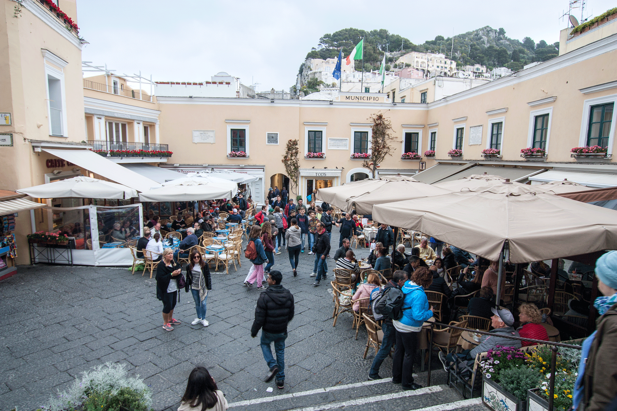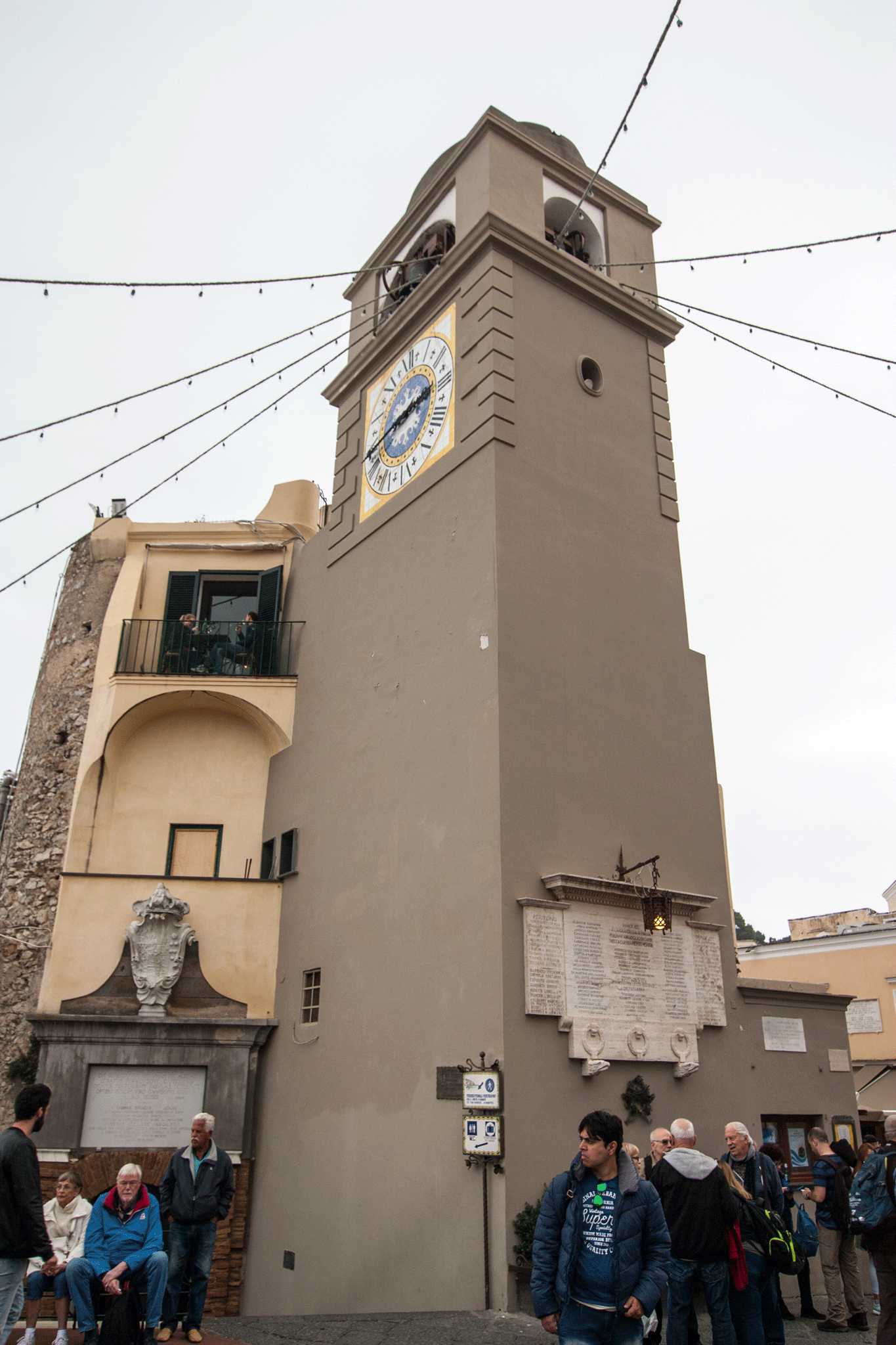 We passed the Capri funicular railway station and were then led along more shopping streets to see Piazza Umberto I and its’ famous clock tower. The piazza was very busy and we could see no seats to spare for a break.