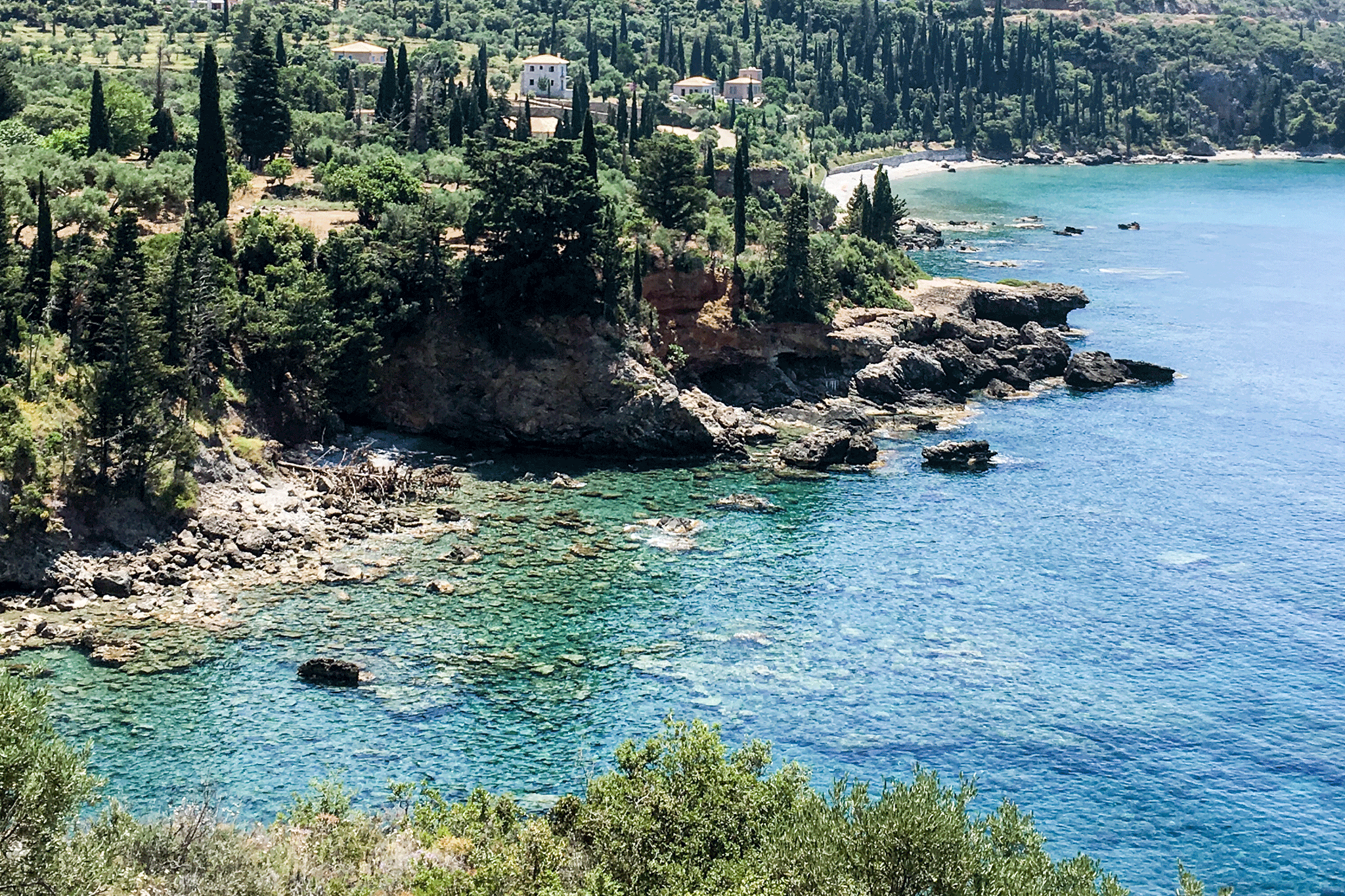 Starting our descent toward Stoupa we pulled over into one of the few parking areas available. The views over the bay are fantastic.