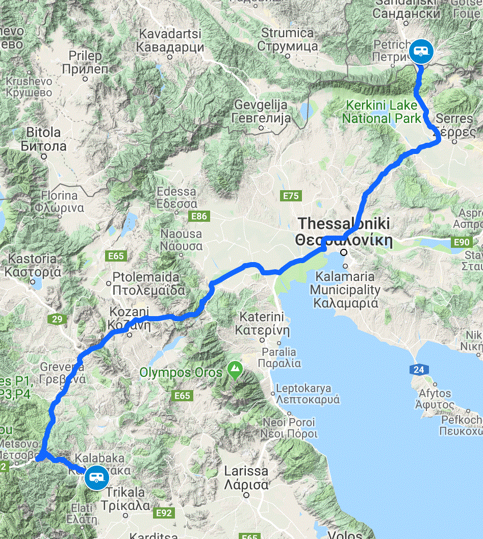 The trip went very well on smooth Greek motorways, mostly toll free. There were nice views to be had and we think we may have seen Mount Olympus in the distance 🙂 Then as we neared the border and we joined a very long, slow moving, queue to cross into Bulgaria.