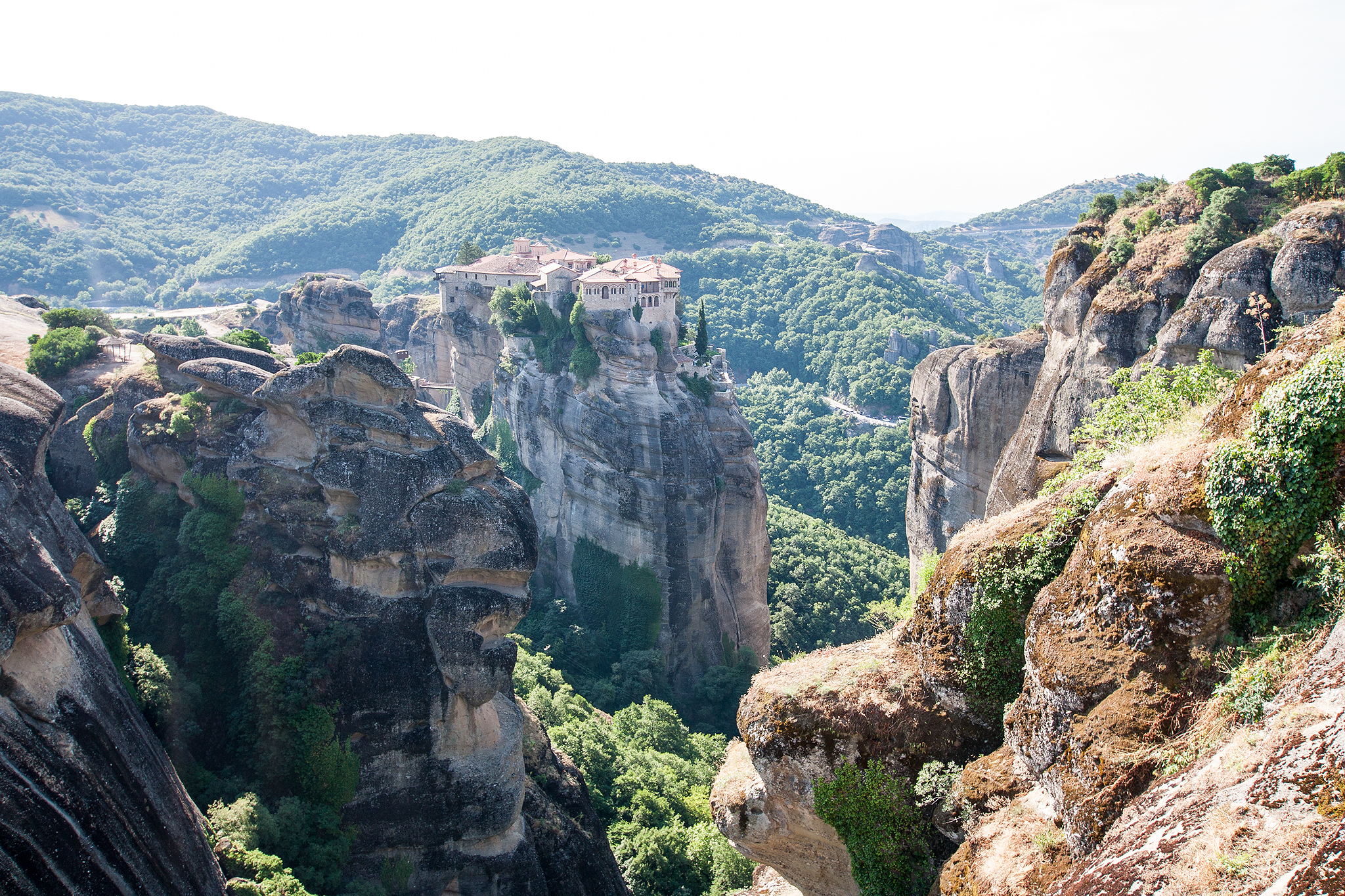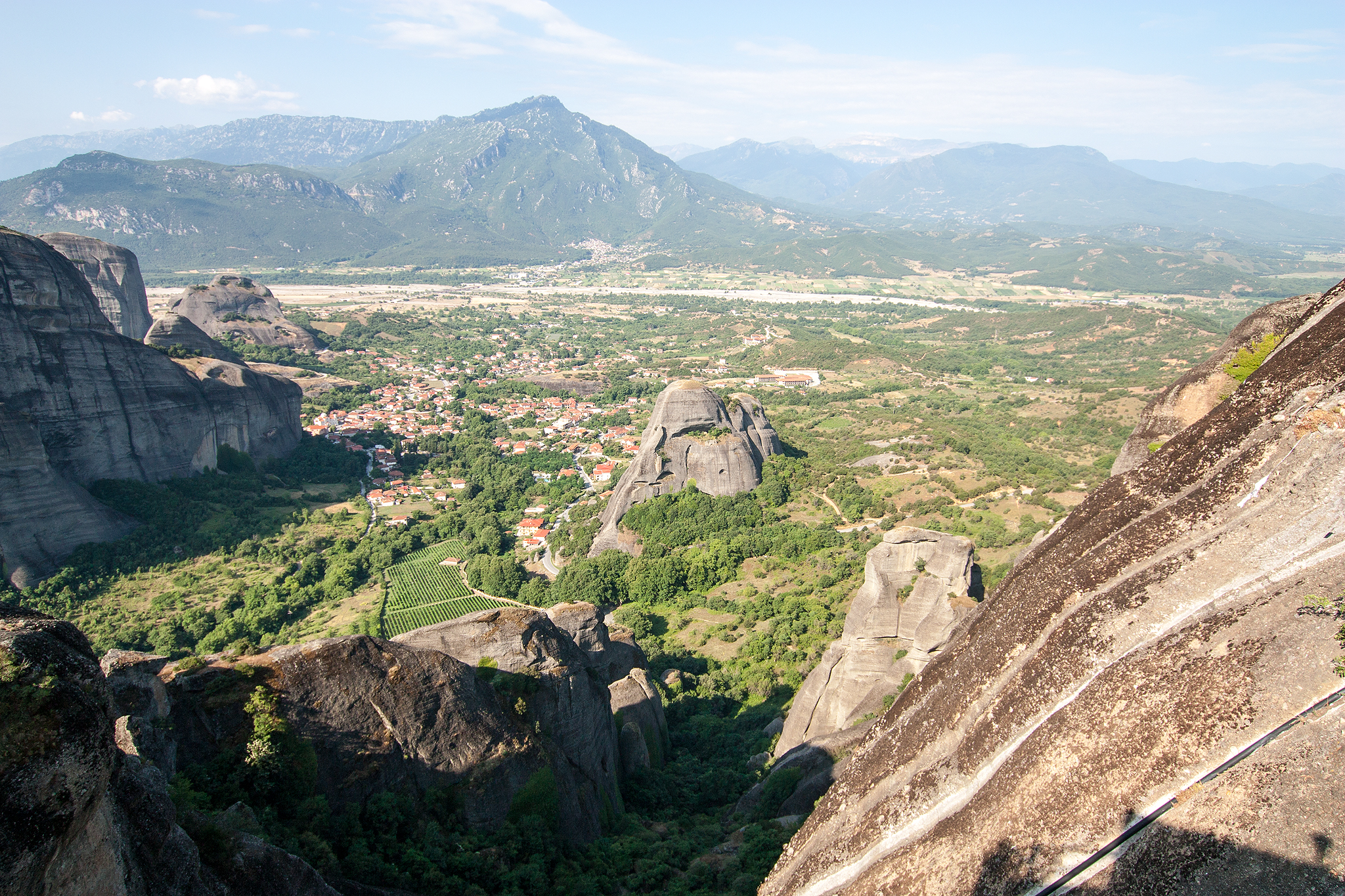 Once you have paid your €3 each entry fee you emerge into the light with fantastic views over all of the Meteora region.