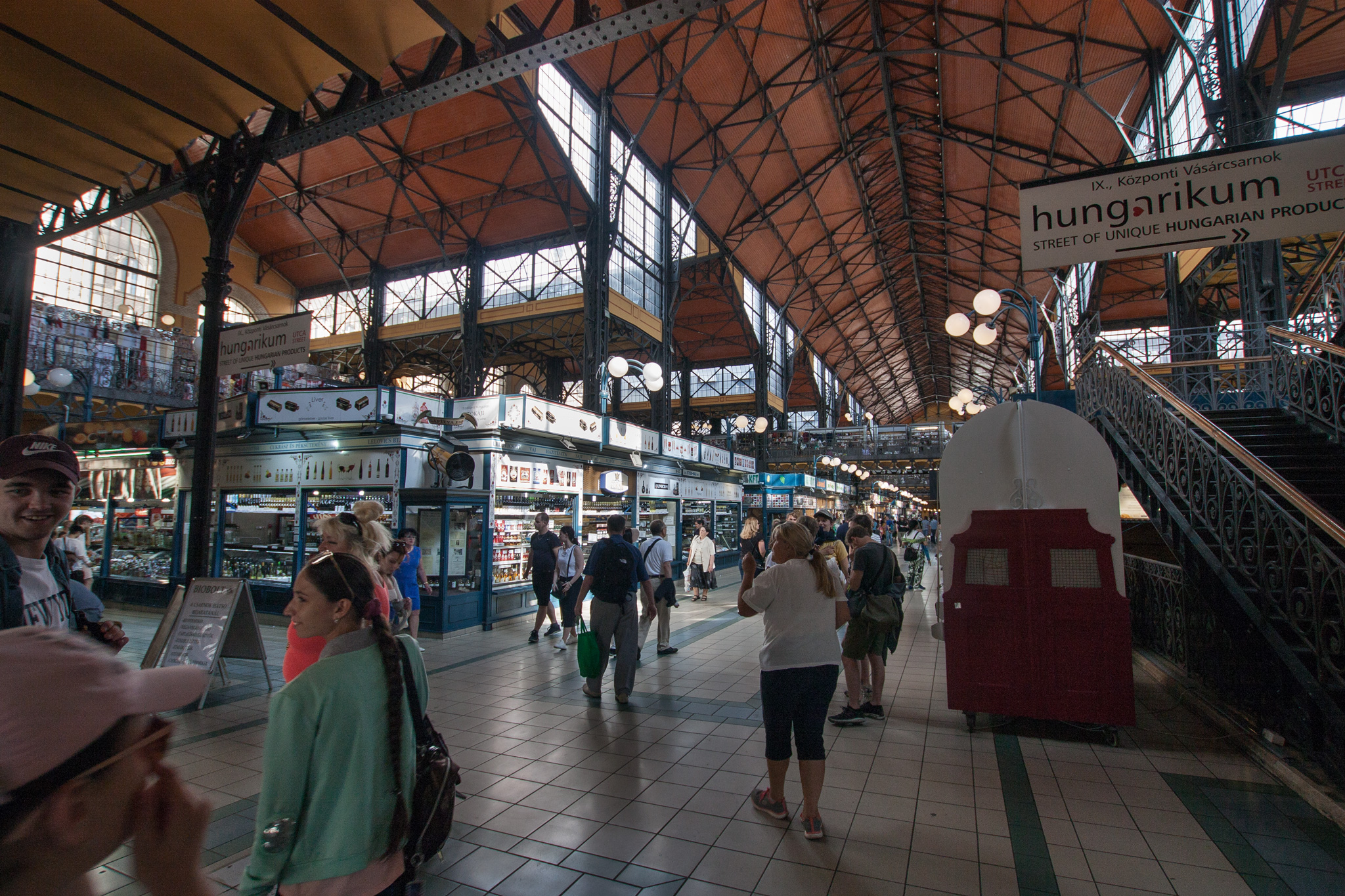 The Central Market Hall or FĆvĂĄm TĂ©r built in 1897 is located here. It is not the only market hall in Budapest but certainly the largest and most beautiful. Inside the hall is huge, with 3 floors, offering anything from fresh fruit and vegetables, famous Hungarian paprika, Tokaj wine, an array of salamis to most household items, souvenirs as well as many eating places on the upper floor.