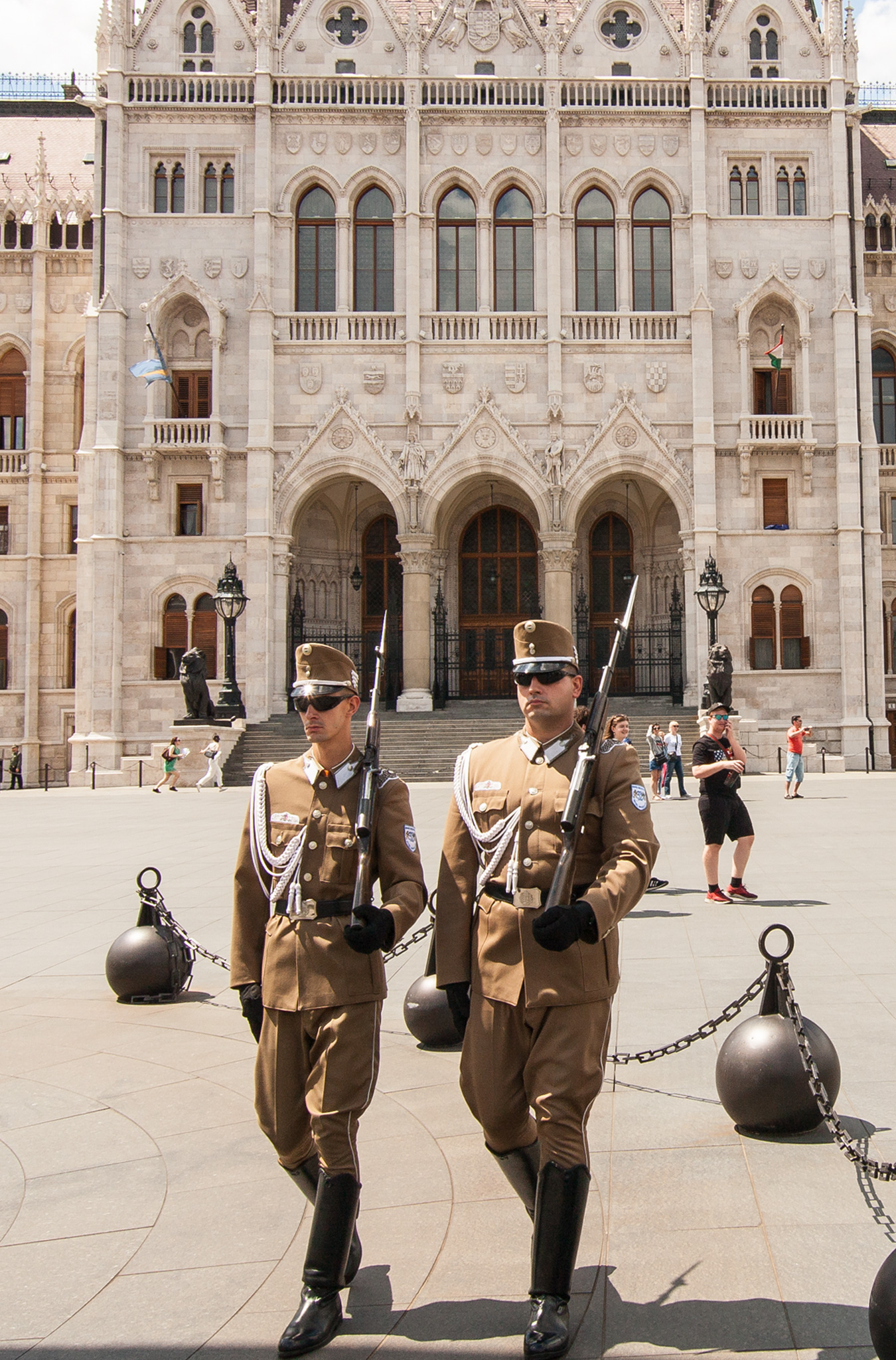 Close to a long rectangular infinity pool we also observed 2 guards who continuously walked in a small circle around the Hungarian flag pole in the centre. Rather them than me!