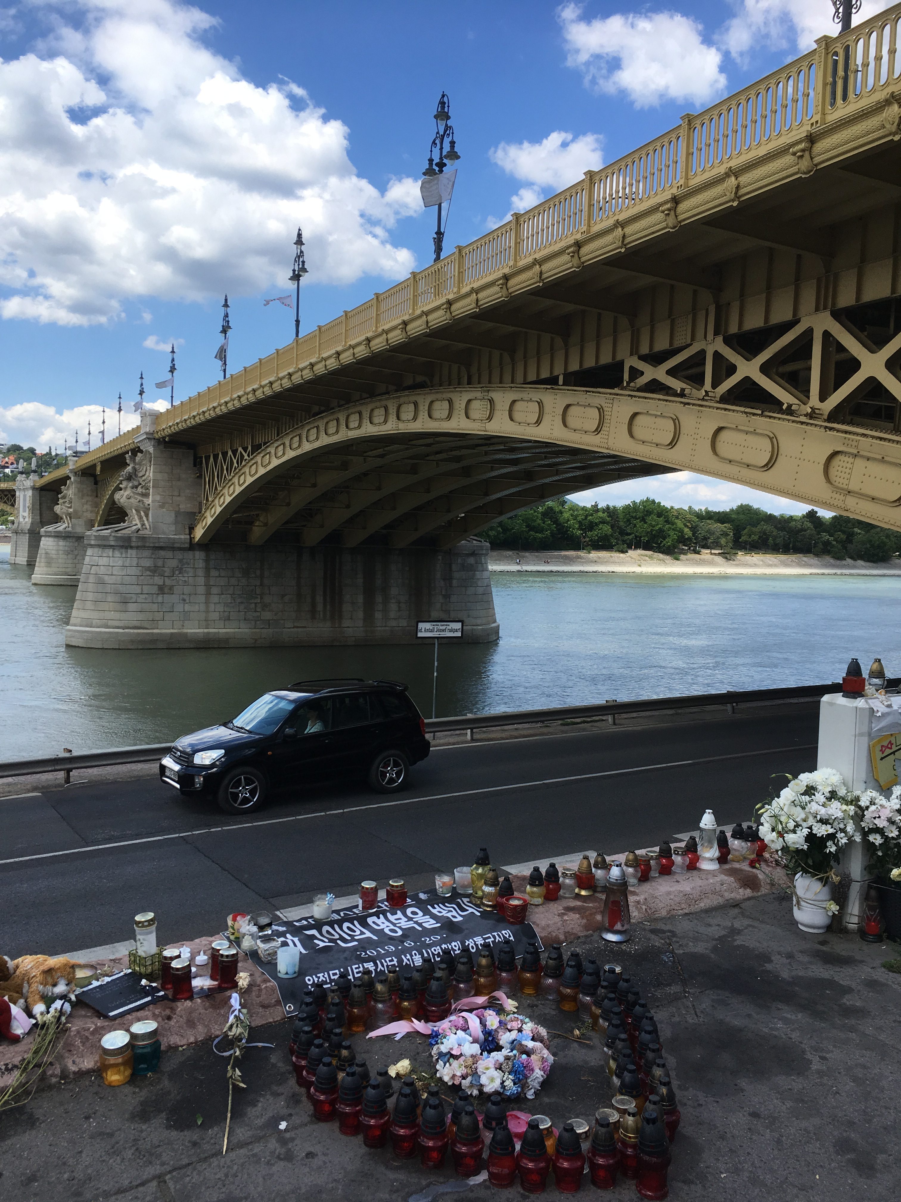 As we exited the bridge we noticed a small memorial along the banks of the river in relation to the recent fatal tourist ferry boat disaster.