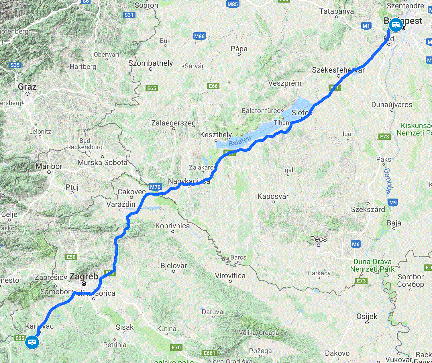 The trip was fairly long, 410km, but progress was good on smooth motorway and with only a short delay at the border.